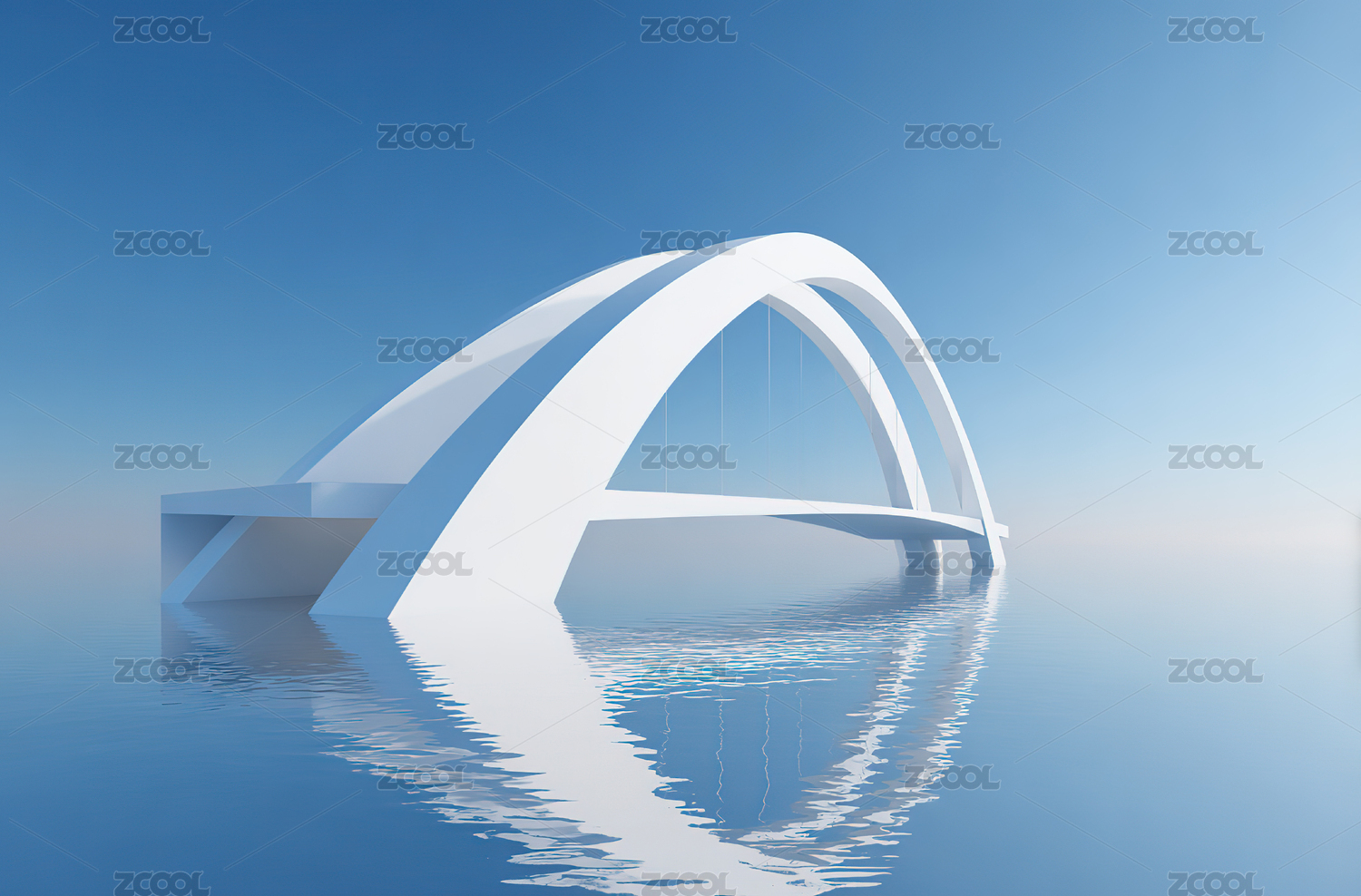 现代拱桥倒映水面