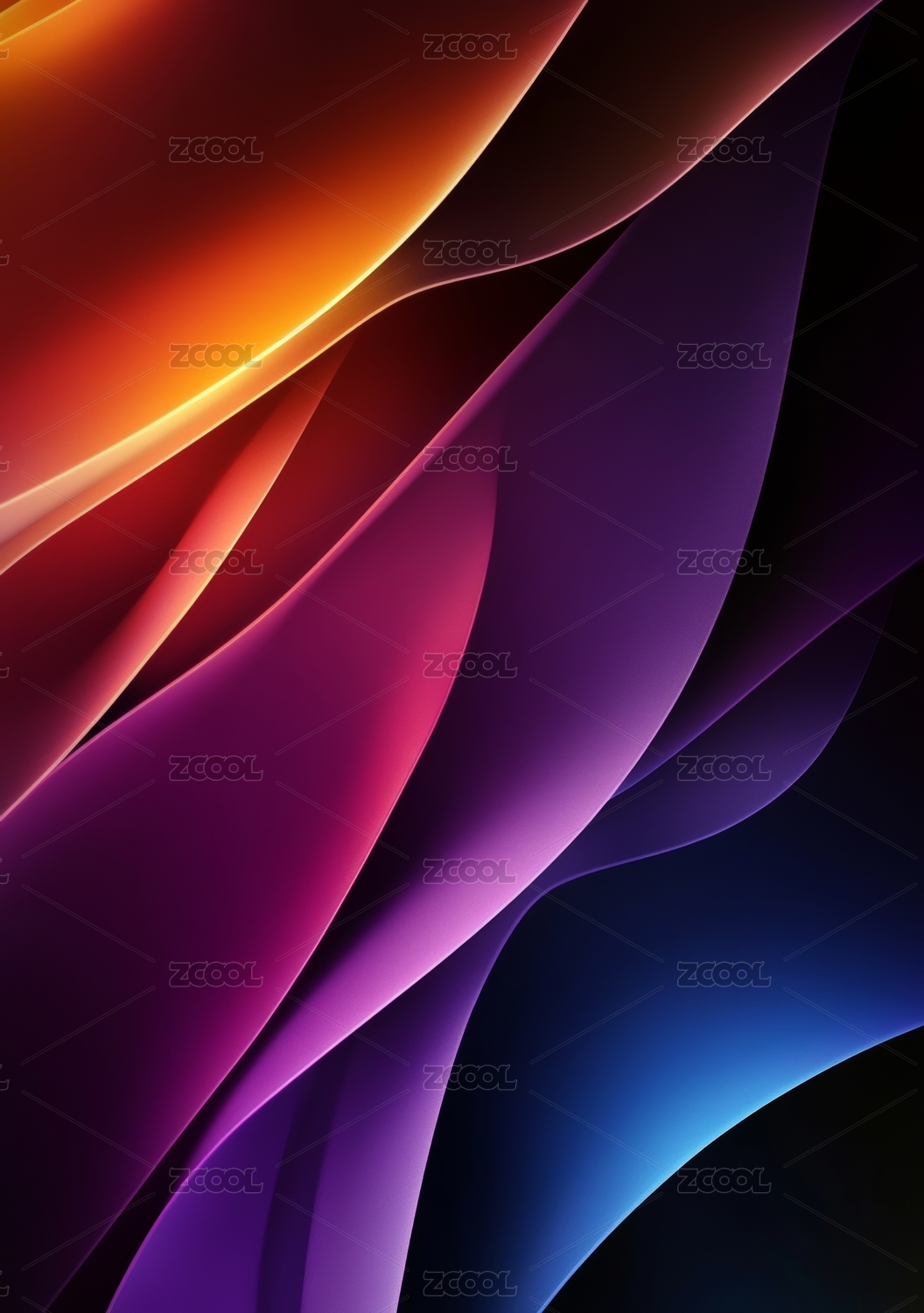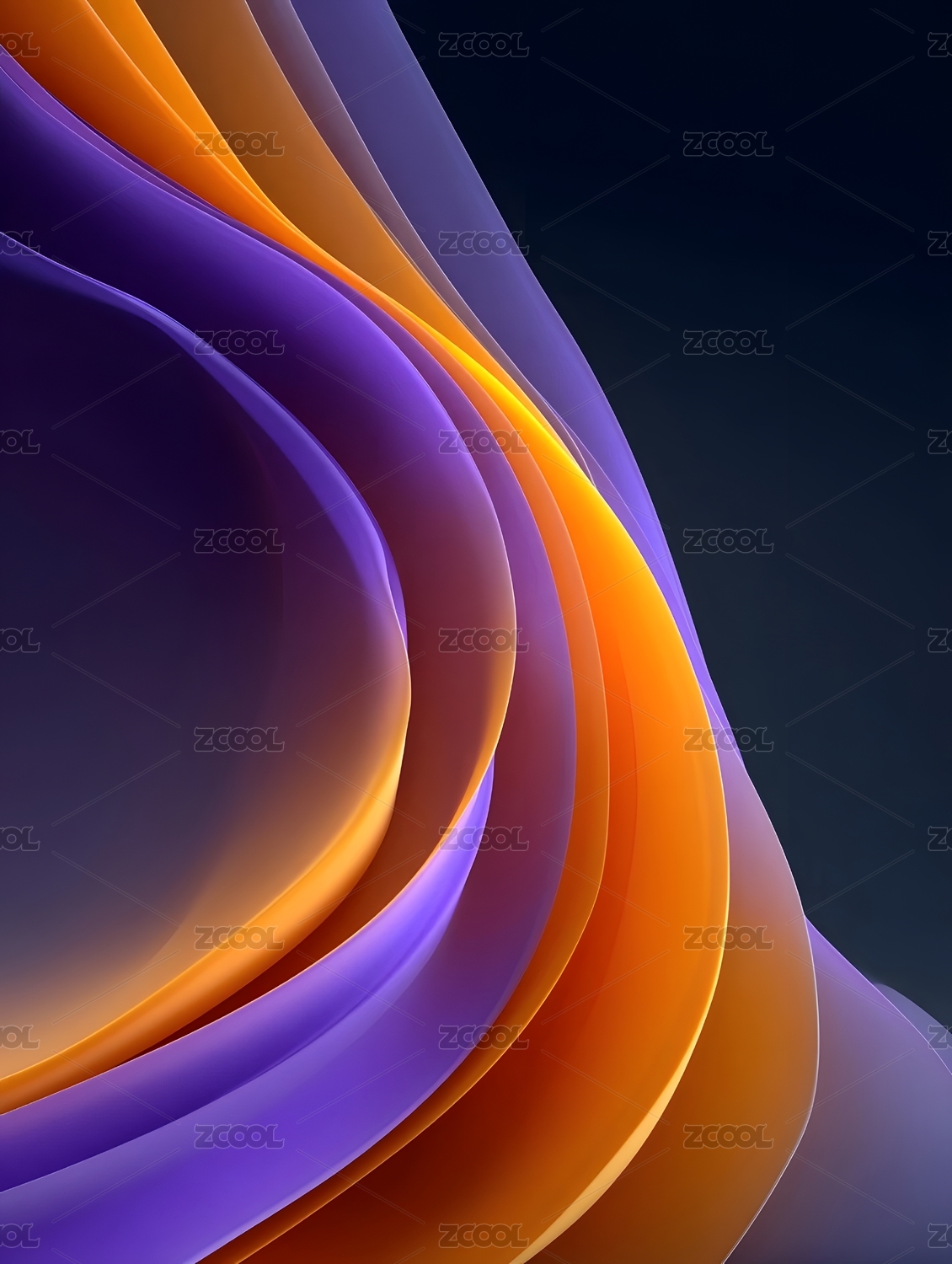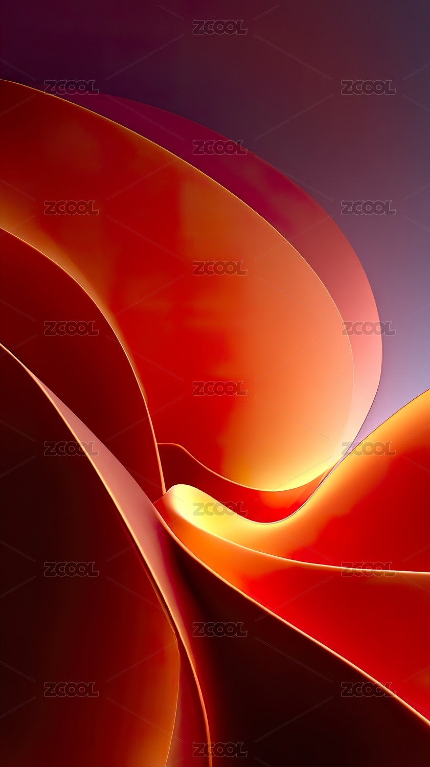 流动的紫色与橙色抽象波纹