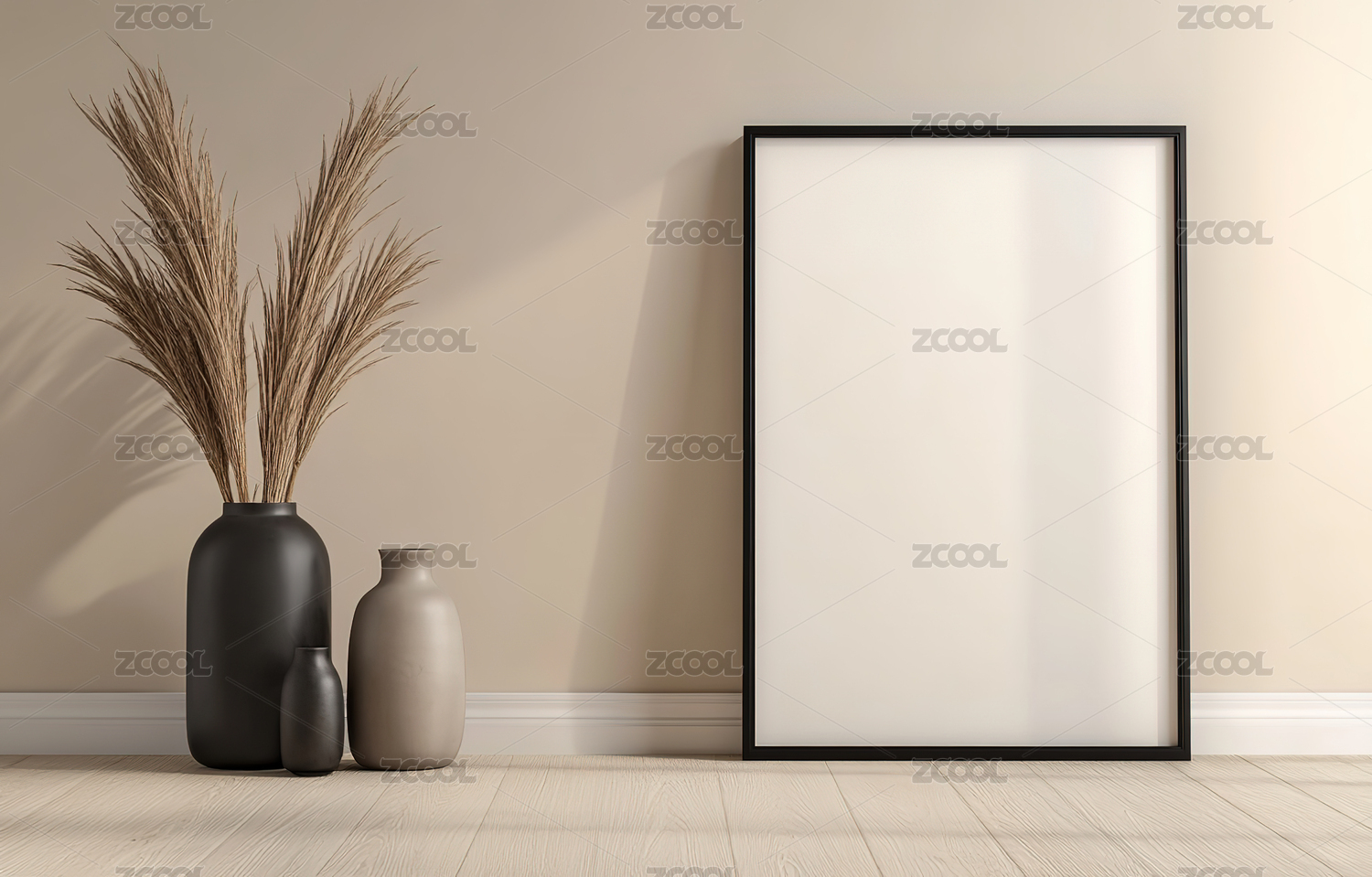 简约室内空白画框与花瓶场景