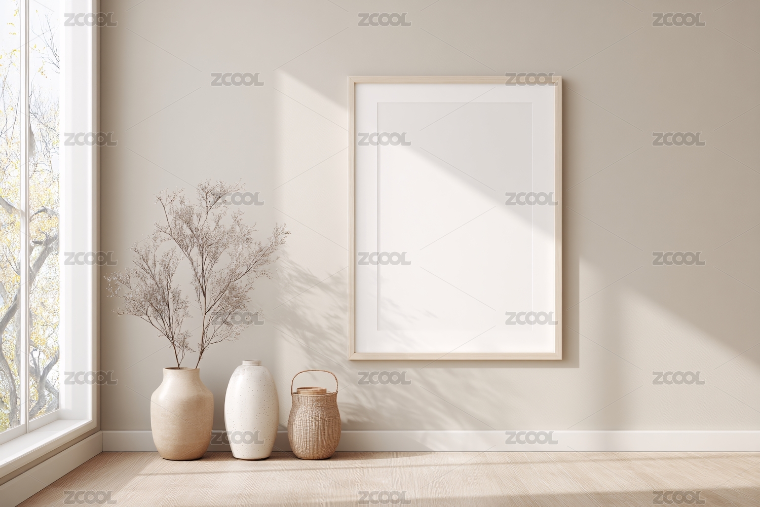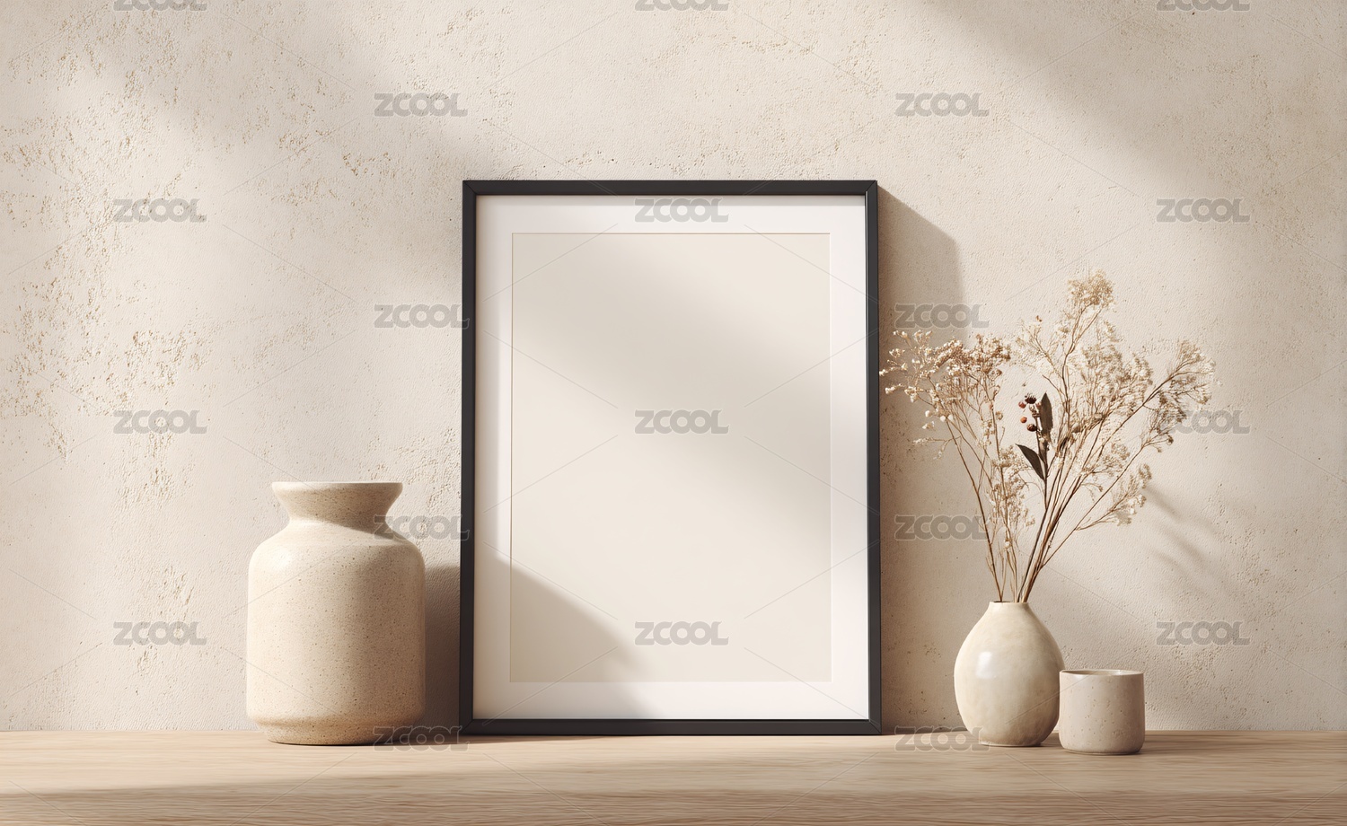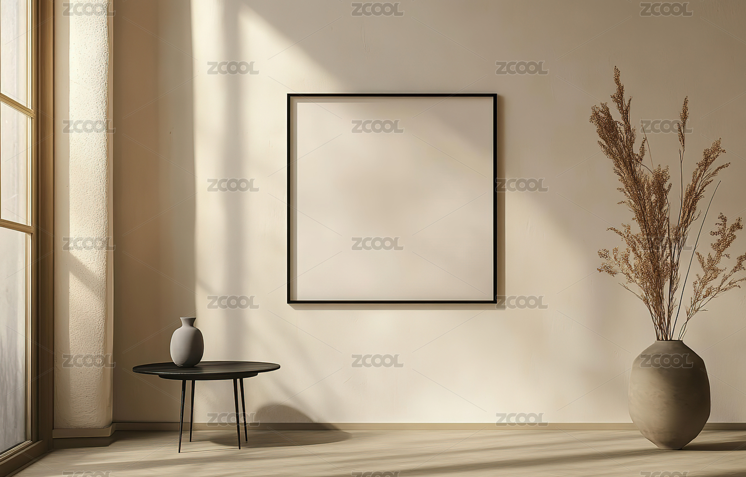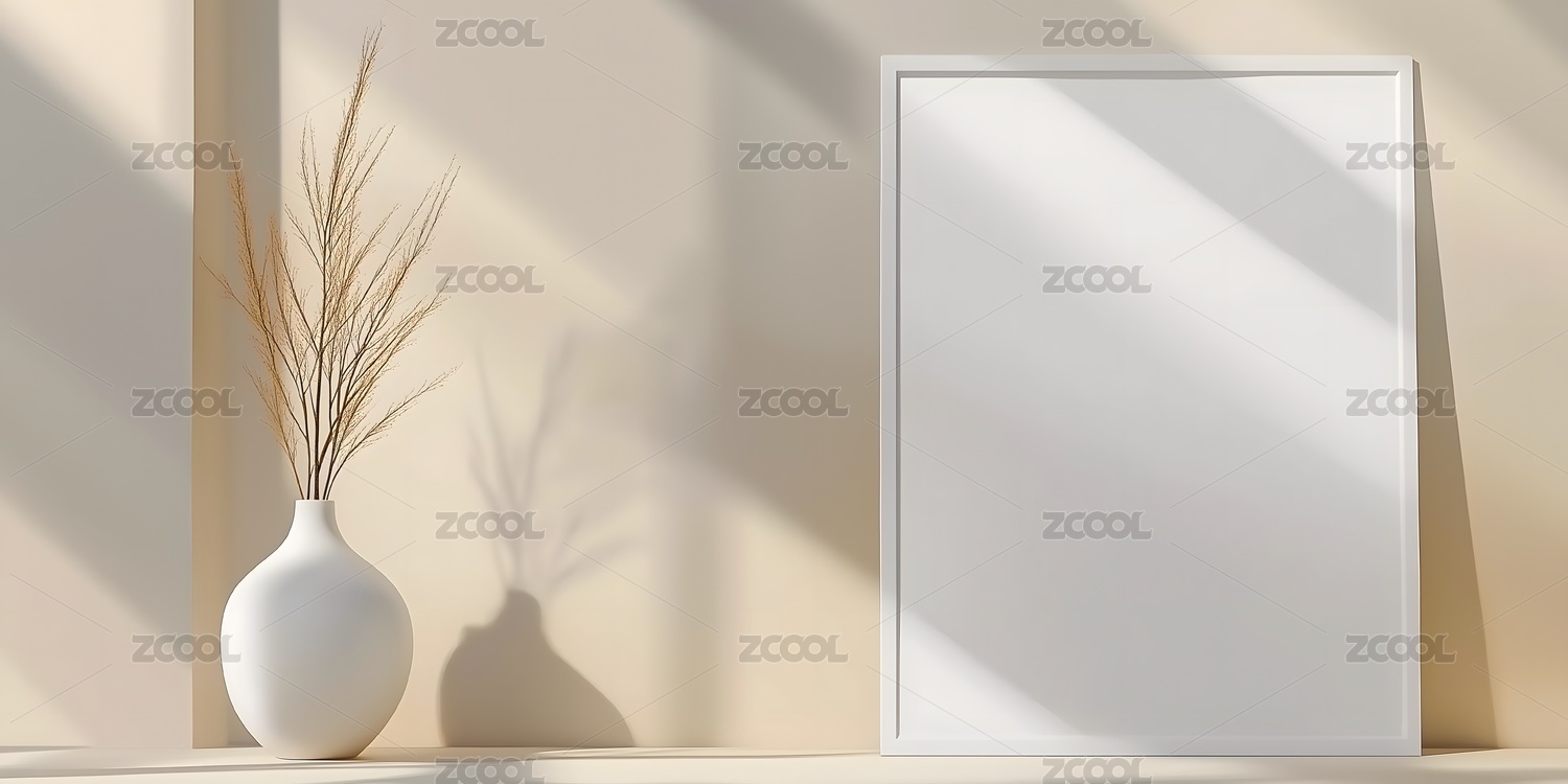 简约室内空相框与花瓶场景