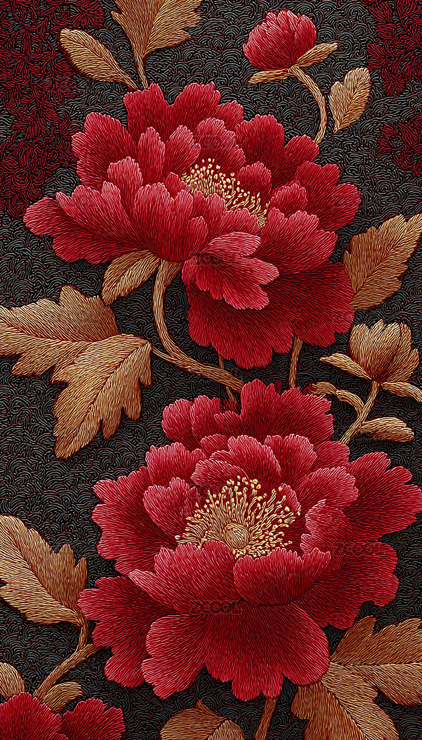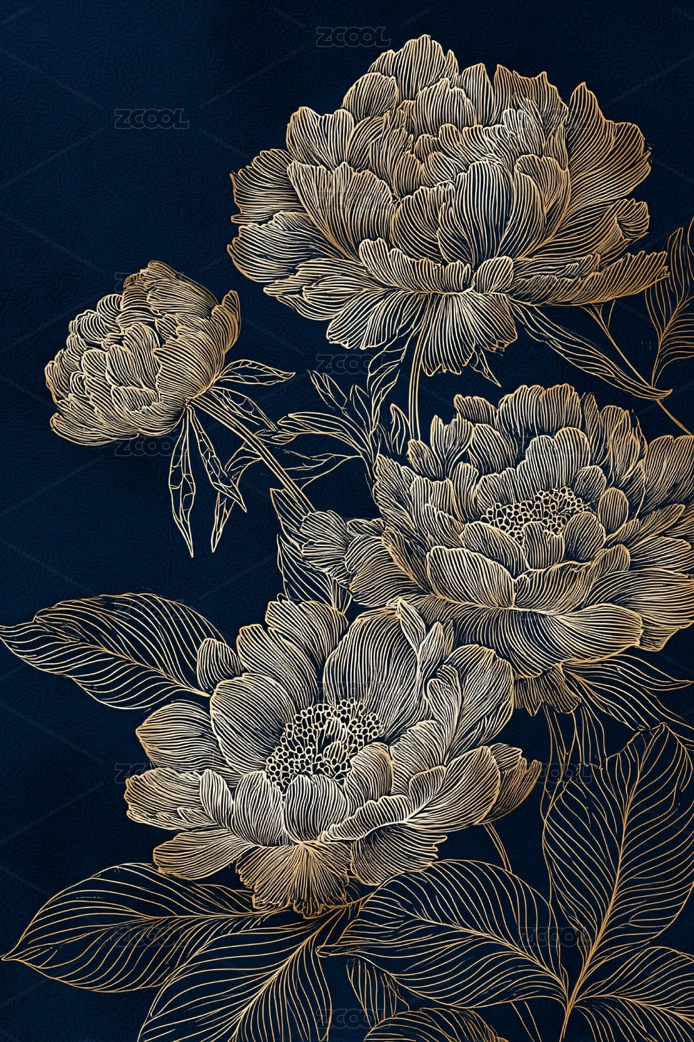 国风传统文化刺绣蓝色白色牡丹图案插画背景