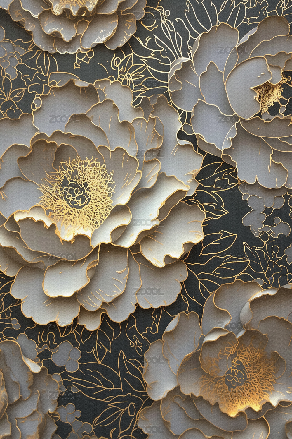 抽象唯美纹理现代简约牡丹花卉装饰画