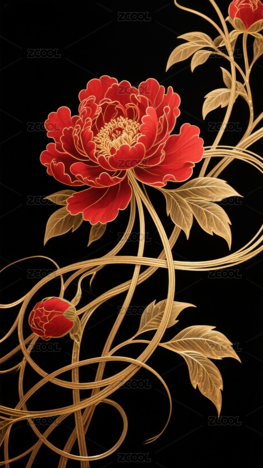 花,圆形,华丽的,装饰品,式样,传统,装饰,AI数字艺术,装饰物,叶子