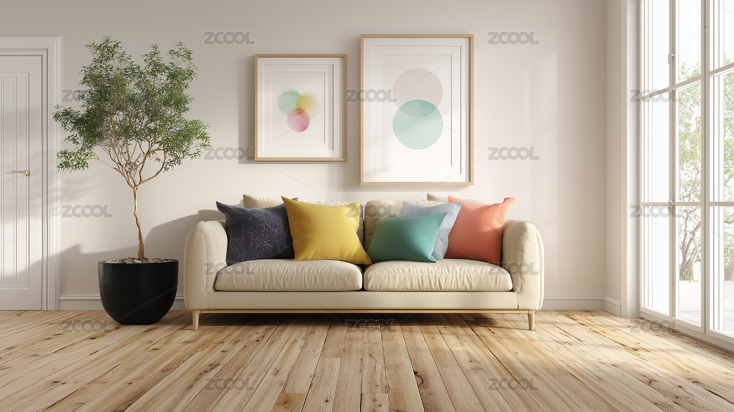 起居室,沙发,AI数字艺术,现代,无人,生活方式,设计,装饰物,窗户,公寓