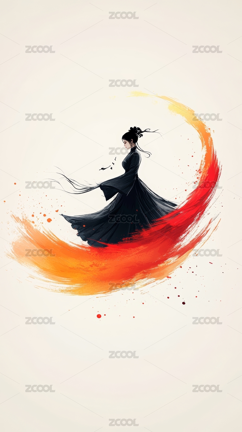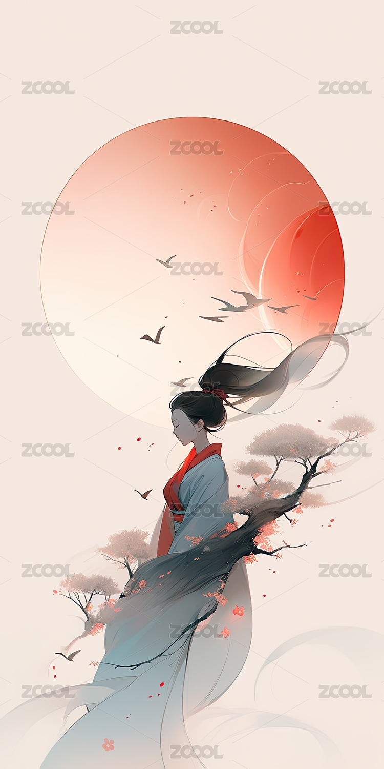水墨画人物插画