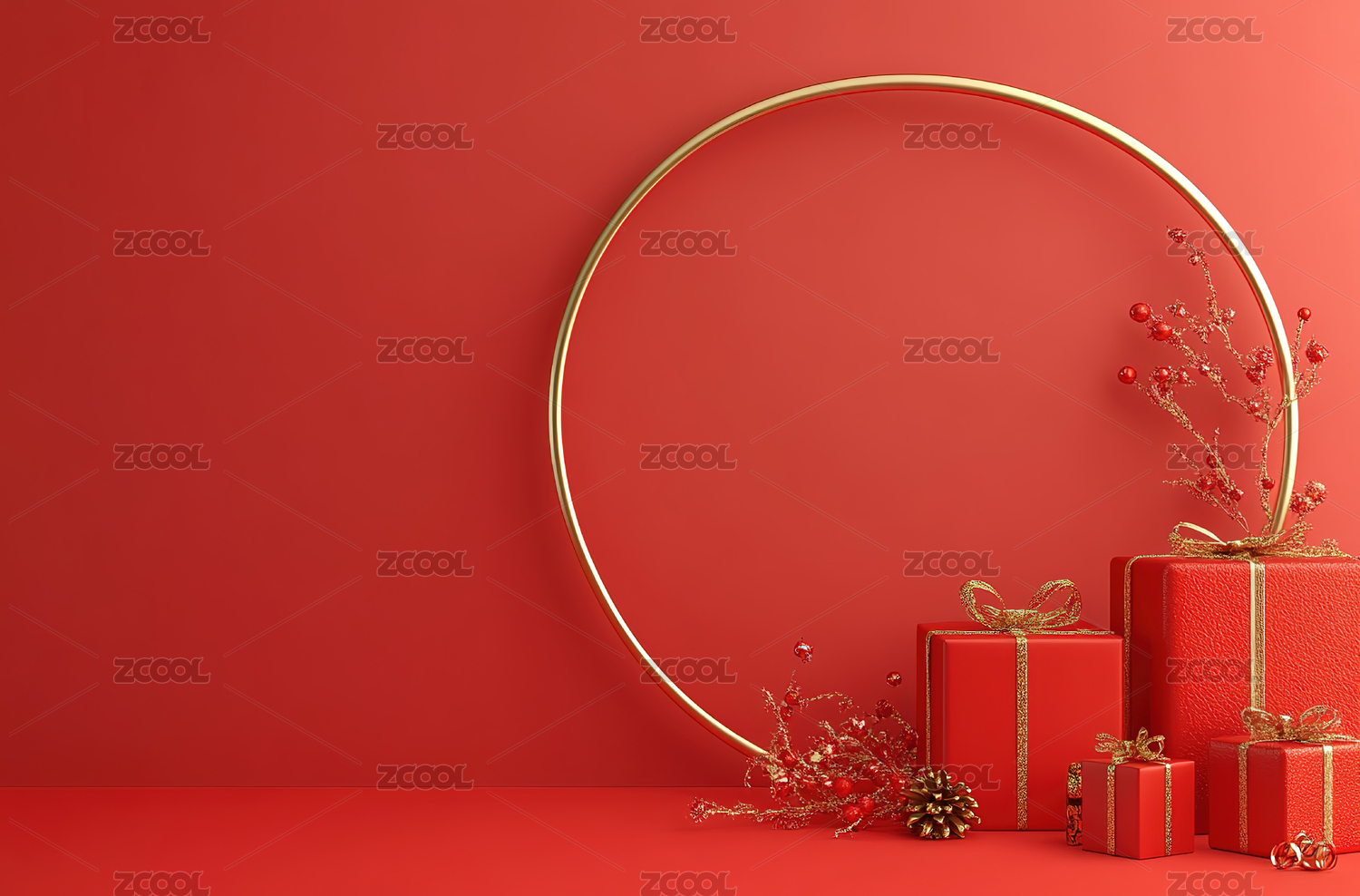 红色的新年主题电商产品展示背景