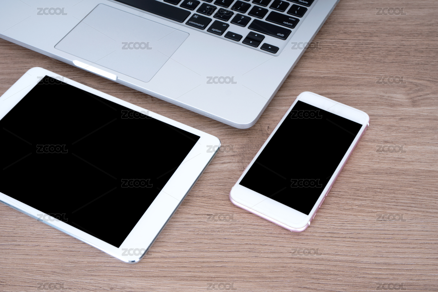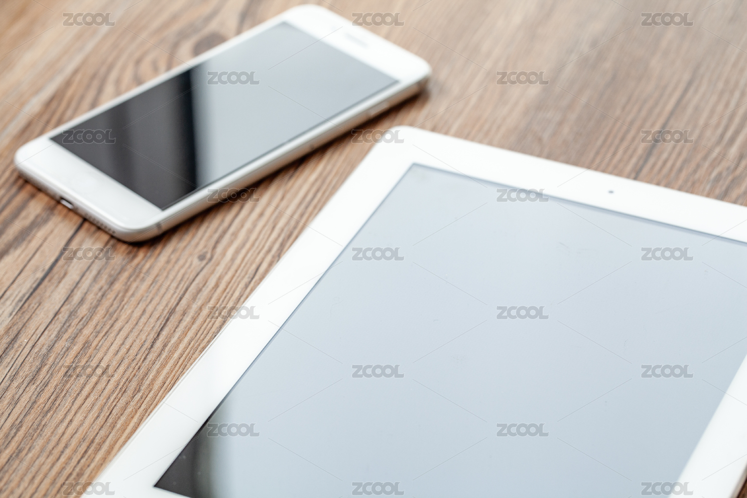 桌面上手机和平板电脑特写