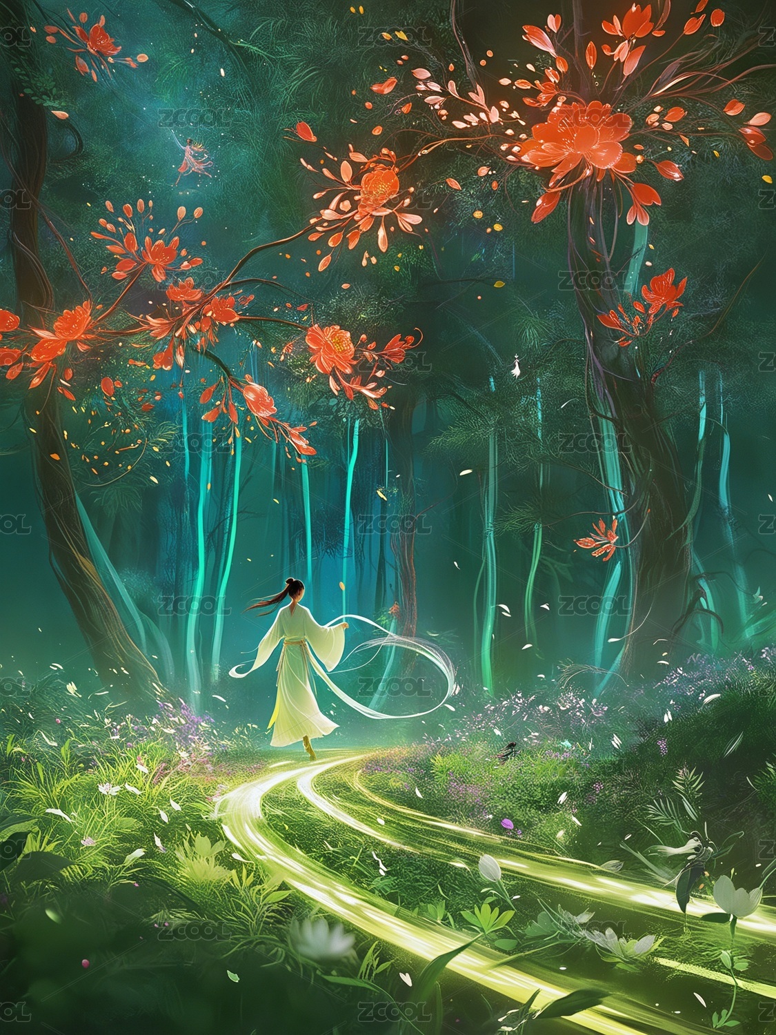 创意,插画,超现实,自然,平静,绘画,蓝色,梦幻,阳光,树木