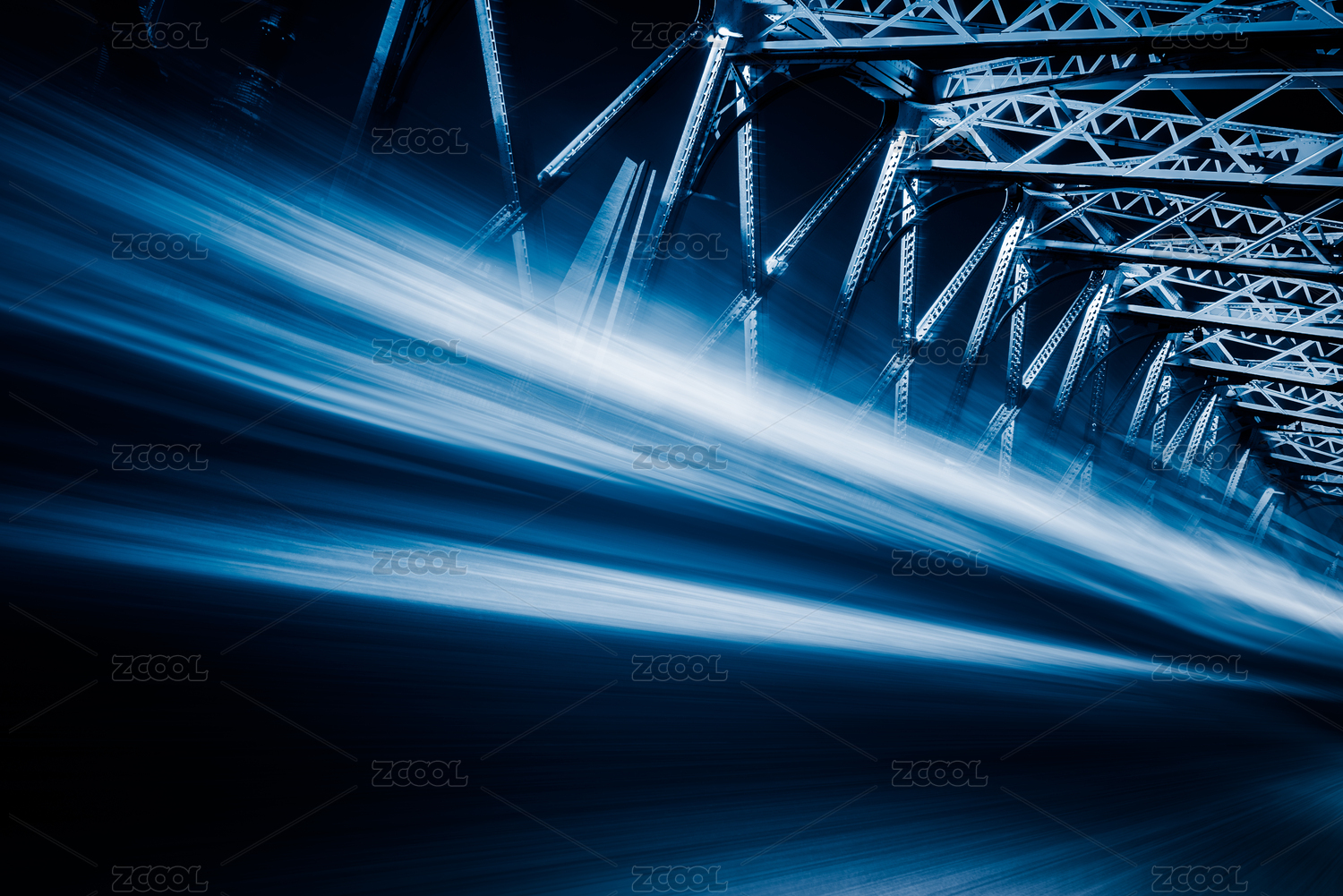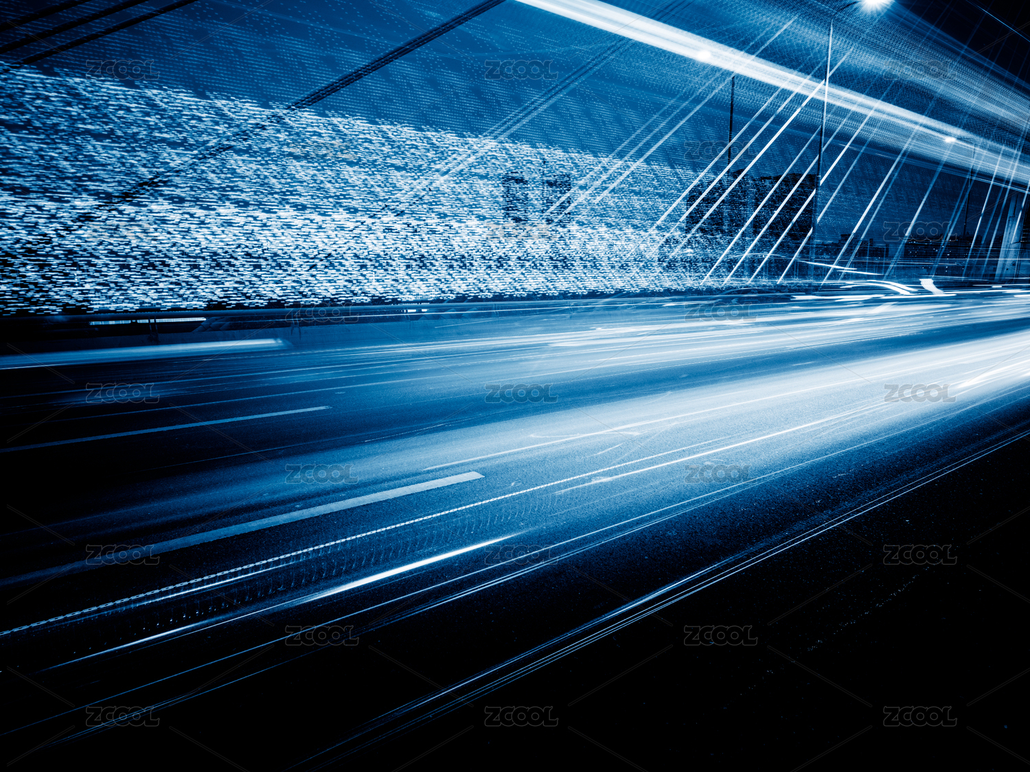 上海外白渡桥 飞驰的汽车尾灯形成的光的轨迹