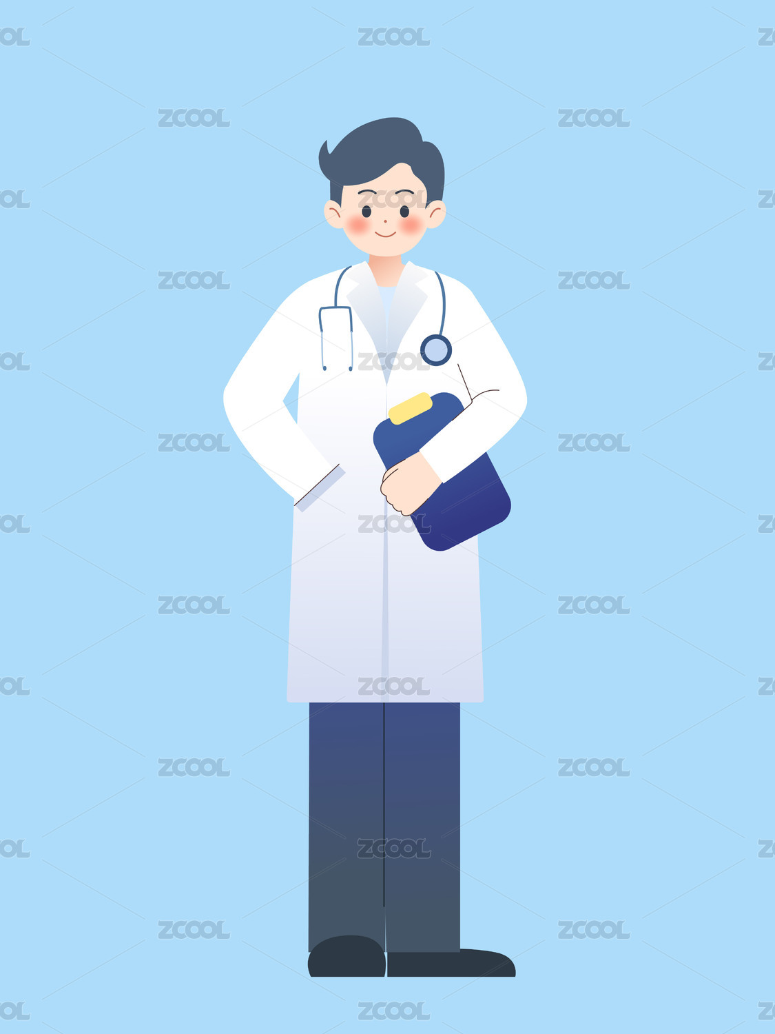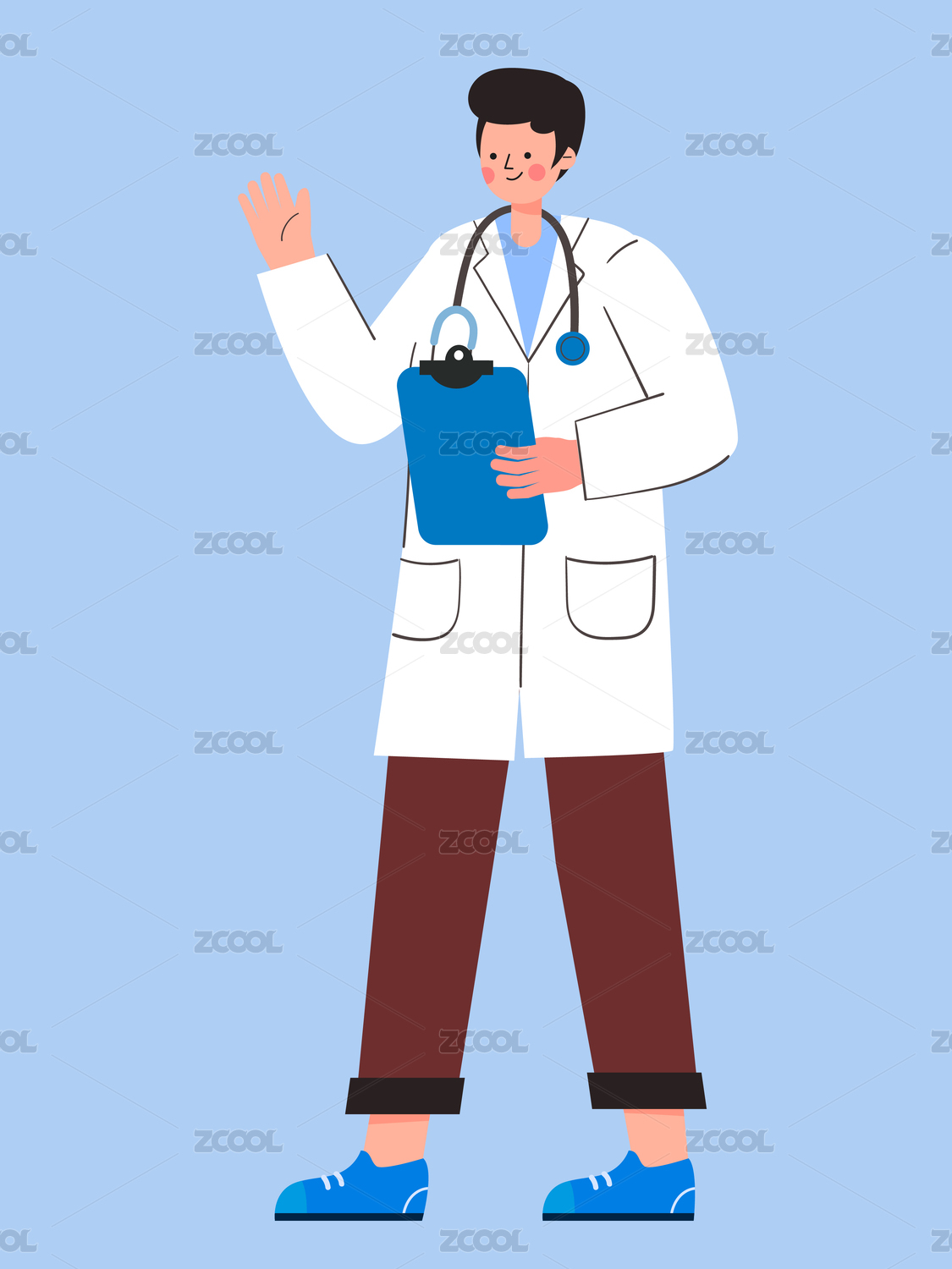 卡通医院穿着白大褂的医生医疗健康矢量插图