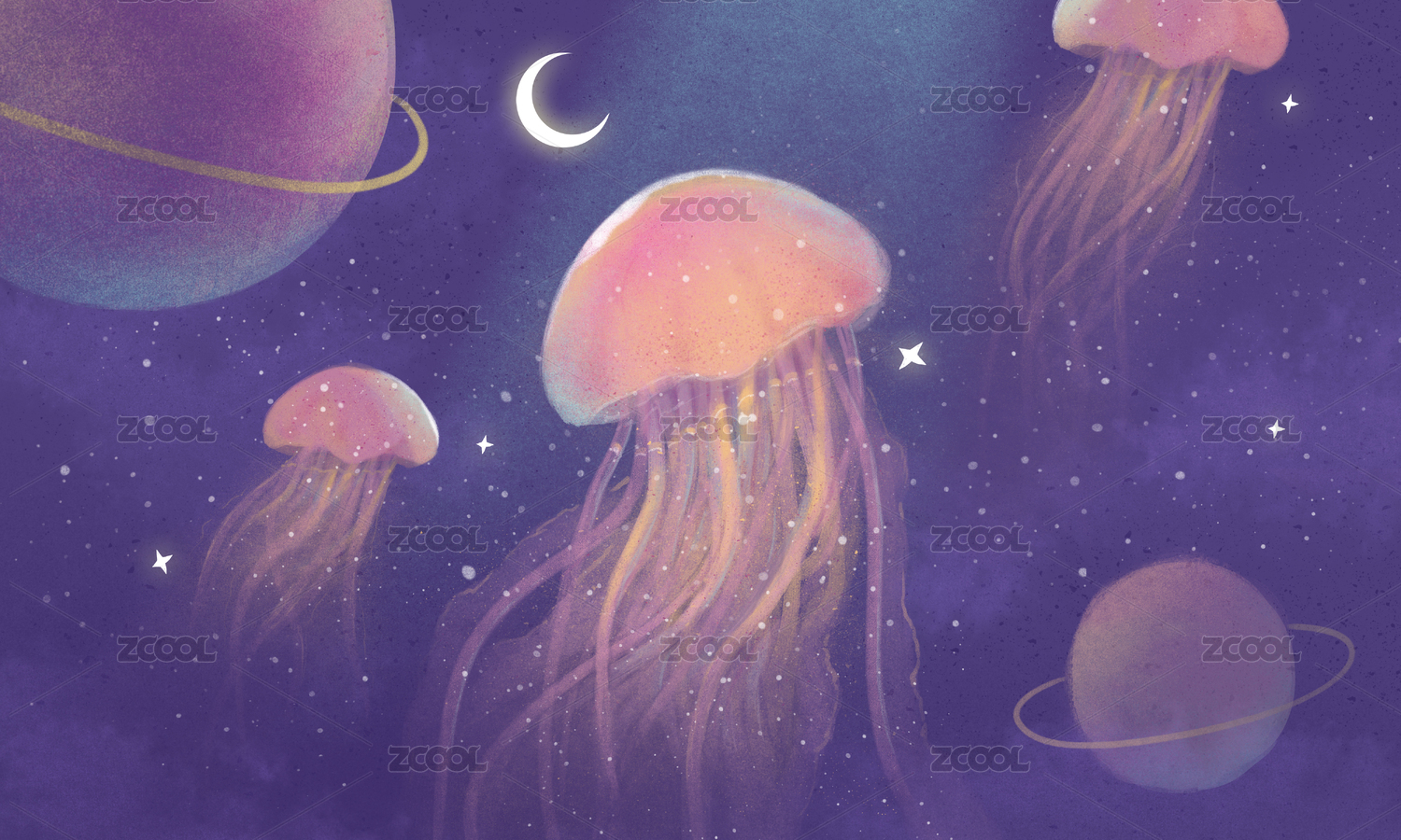 水域,鱼类,星系,外太空,海洋,水母,星空,月亮,星星,潜水