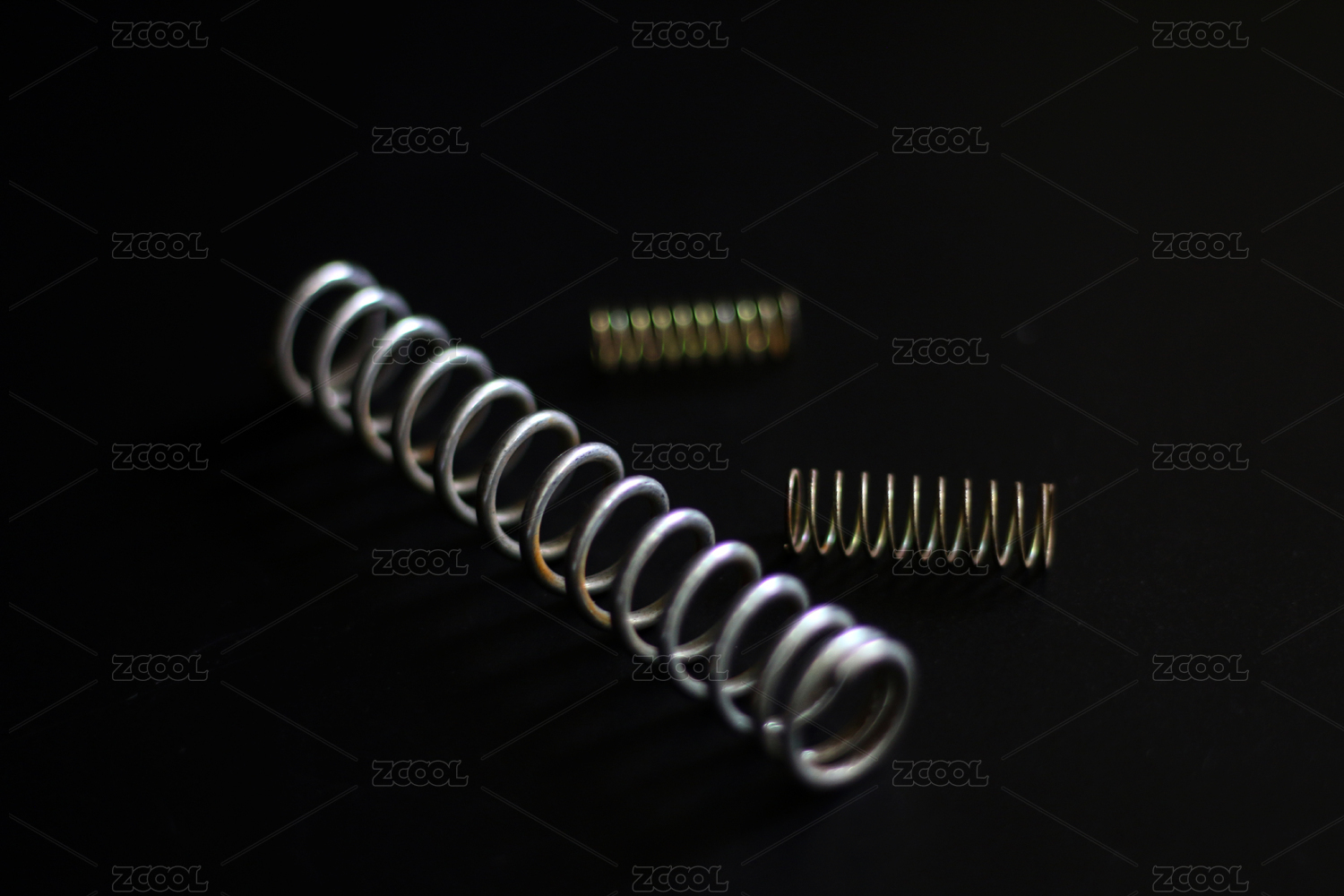 纯黑色背景上摆放的静物弹簧