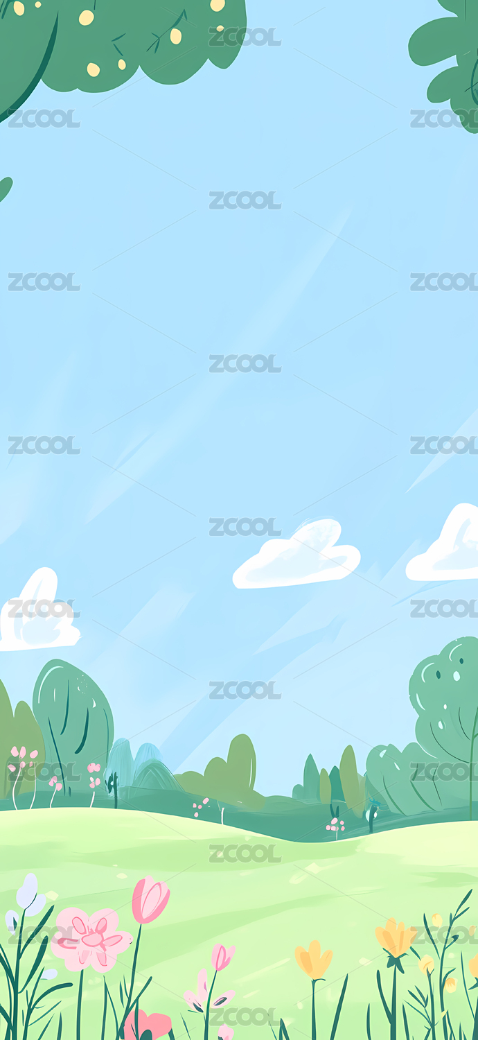 卡通手绘春天夏天绿色场景