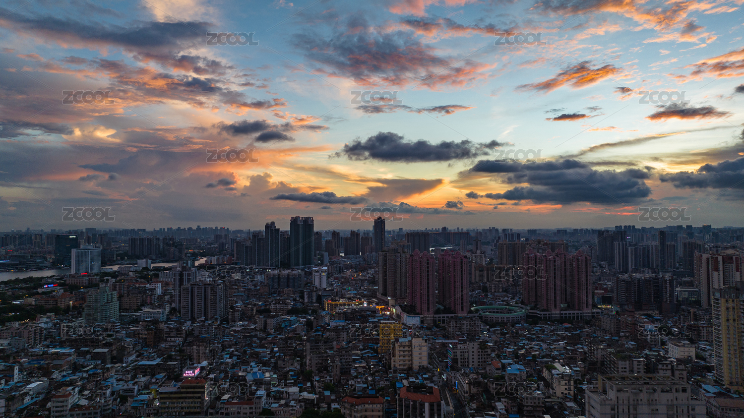 中国广州城市密集建筑群黄昏景观