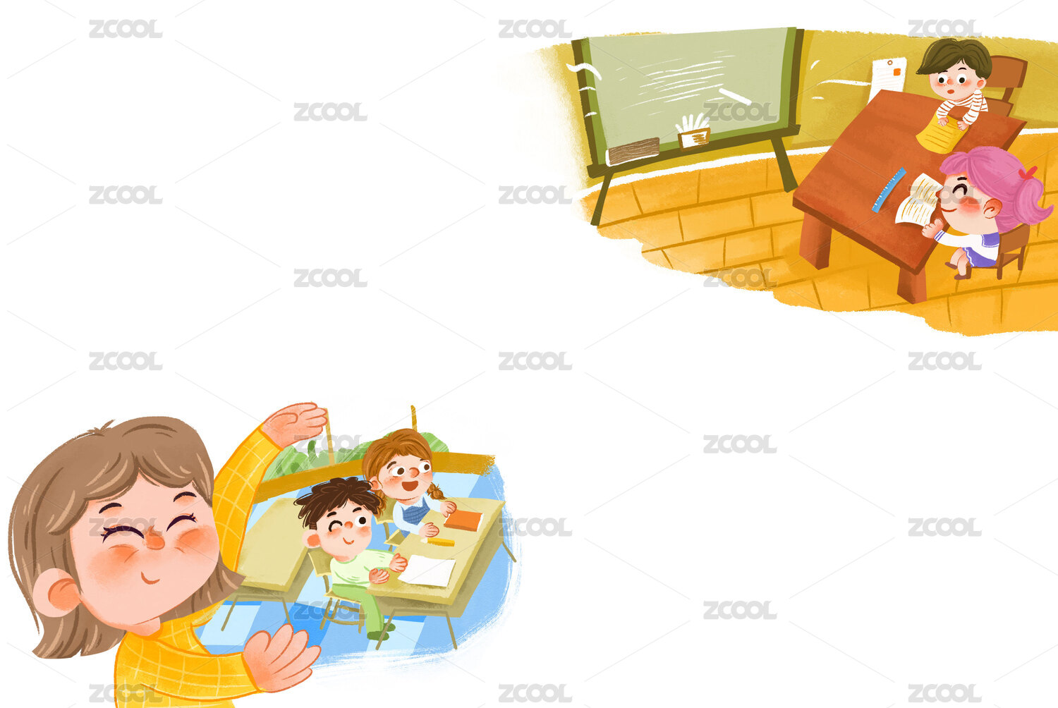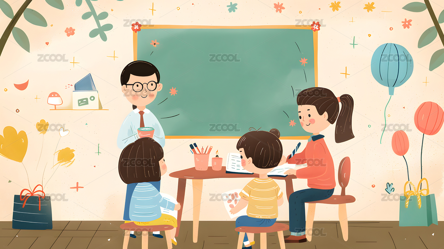 扁平风幼儿园老师课堂讲故事幼教绘本读书