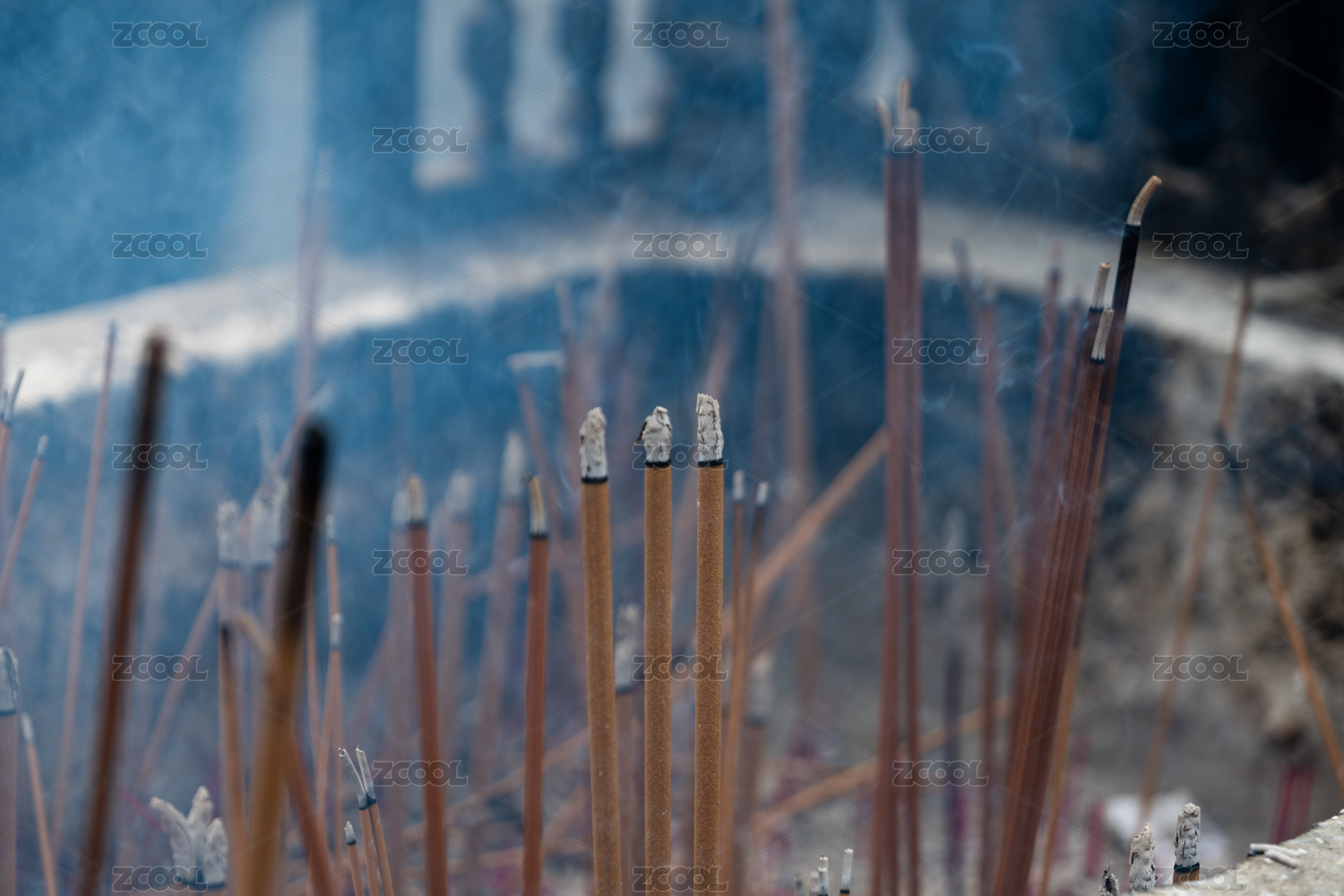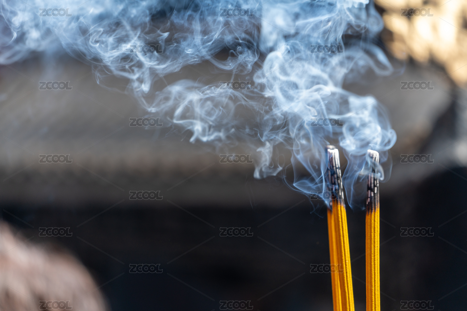 寺庙的烧香飘起缕缕白烟,佛家宗教信仰