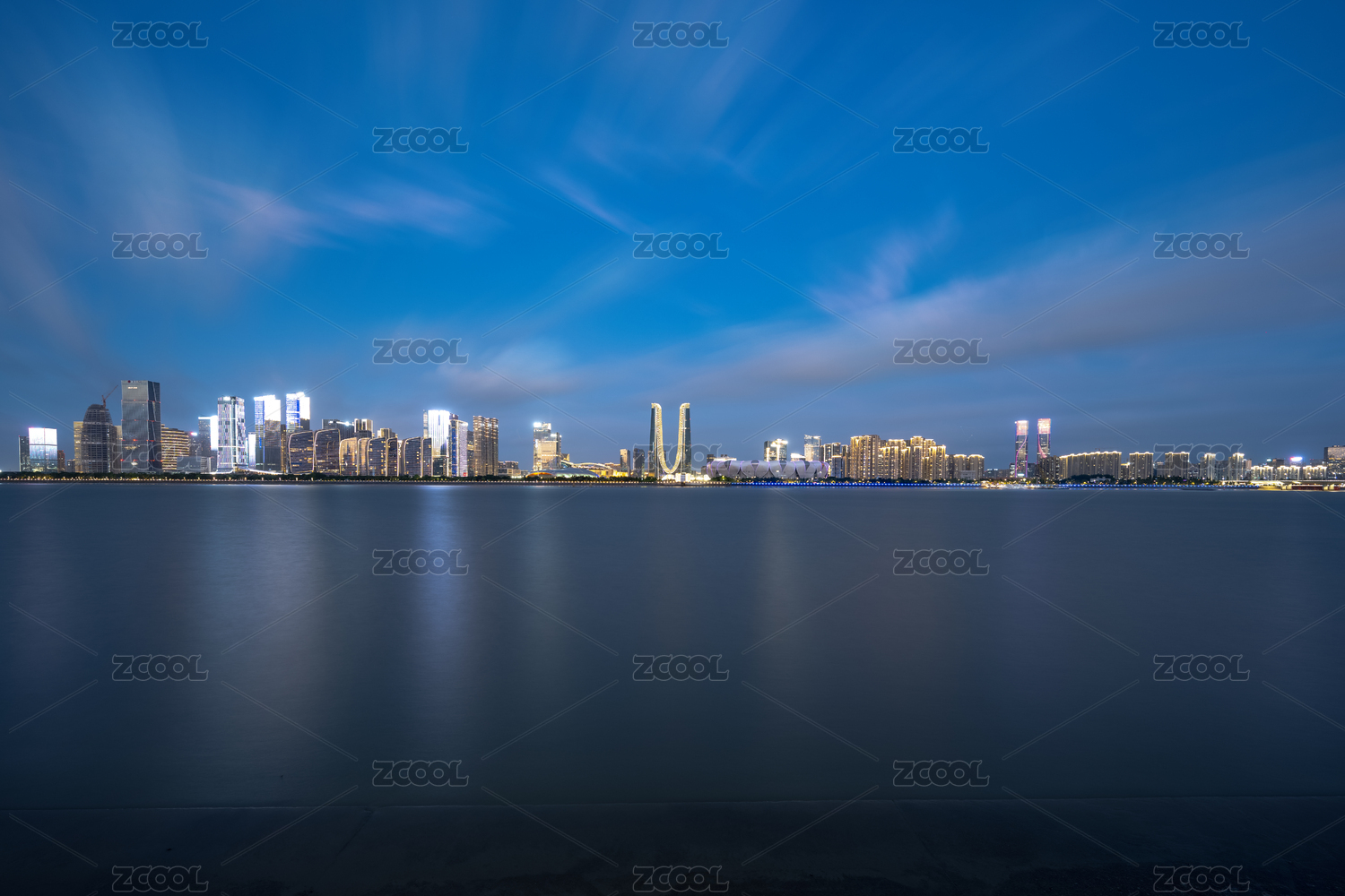 杭州城市天际线奥体杭州之门夜景火烧云对称