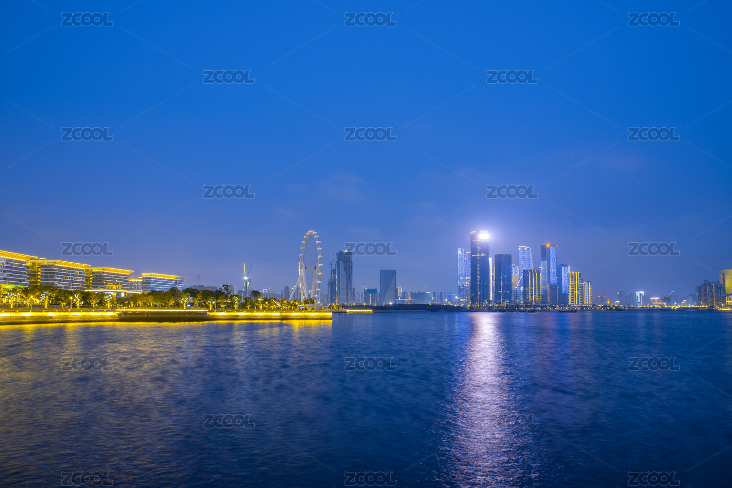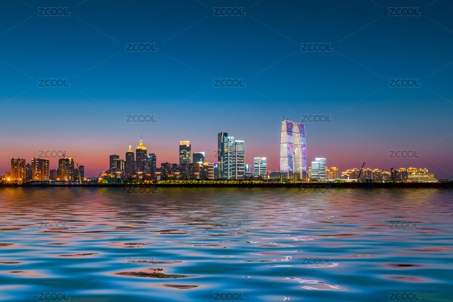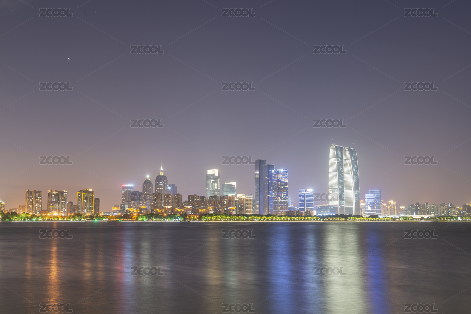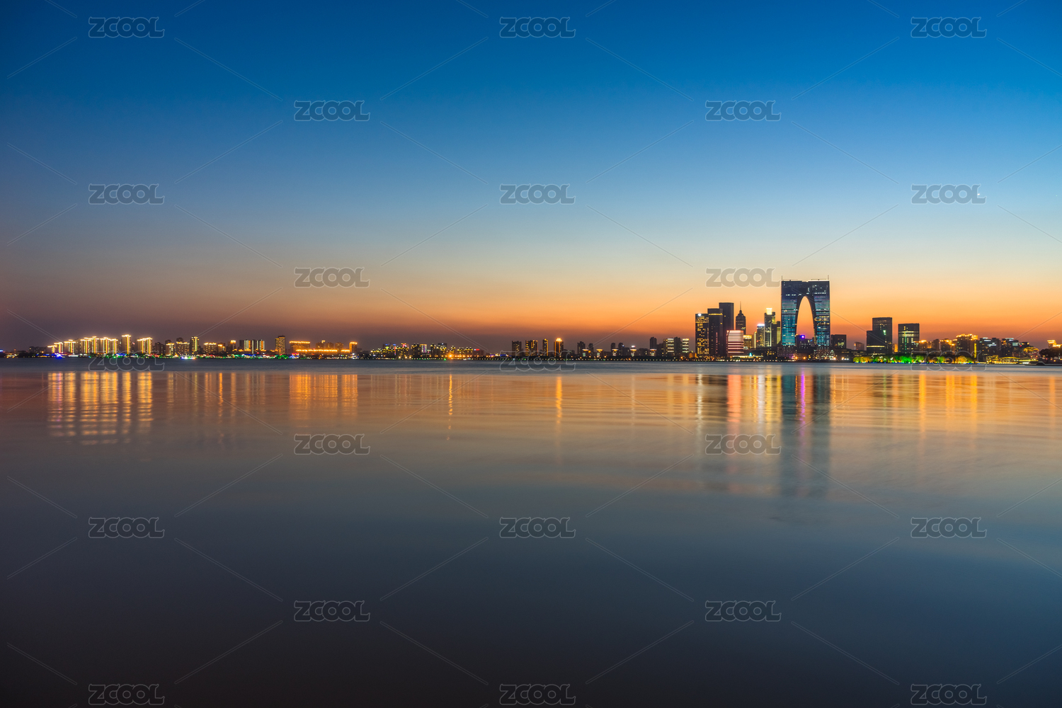 苏州金鸡湖湖东现代滨水城市夜景风光