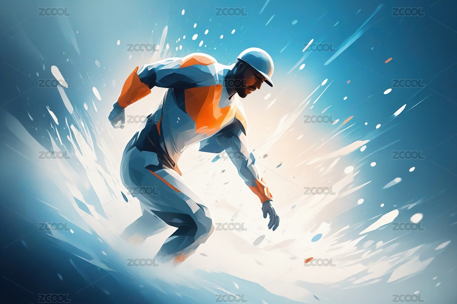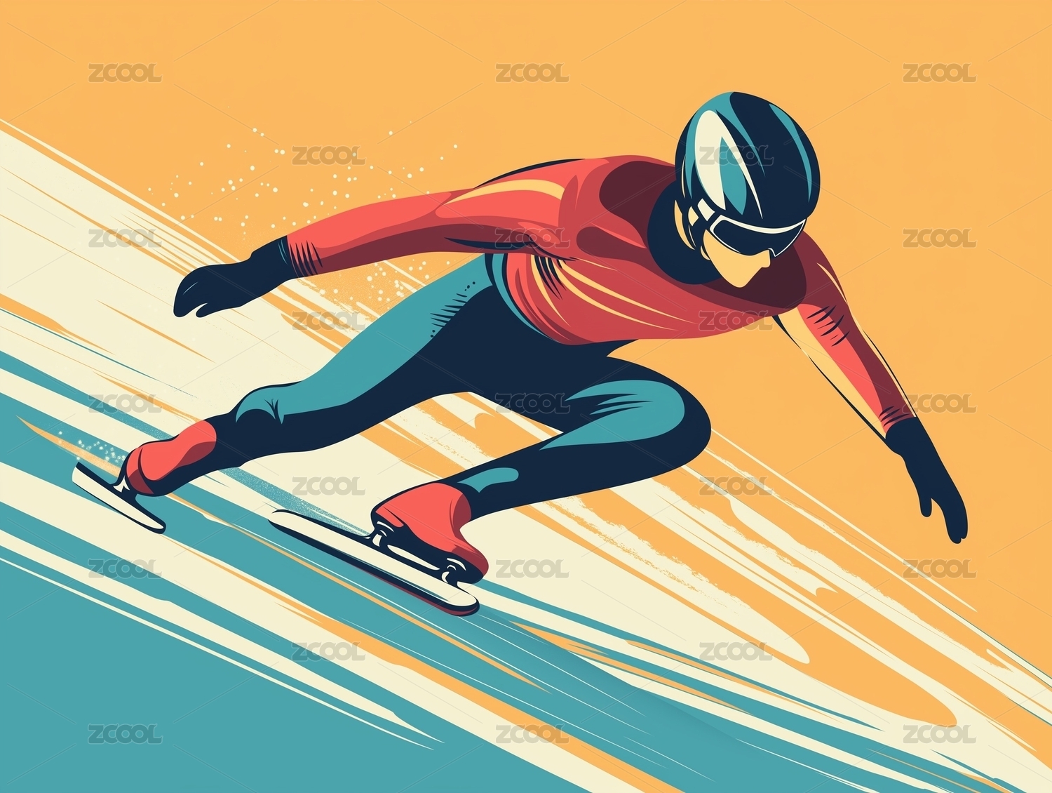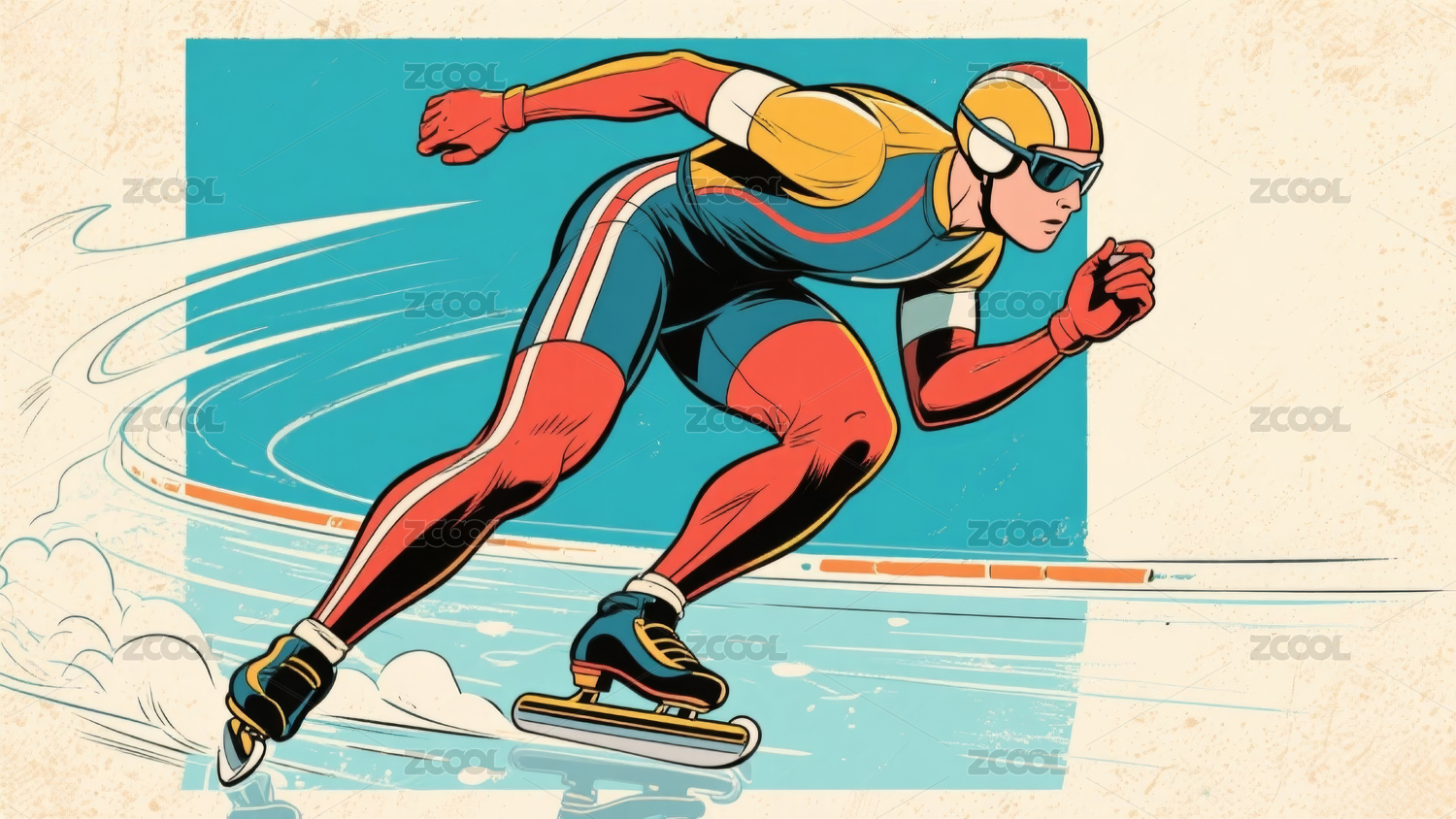 一个速滑运动员 手绘插画