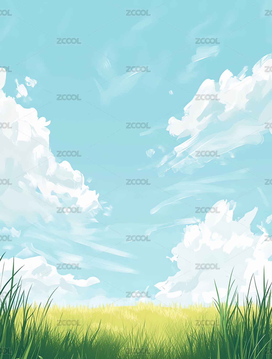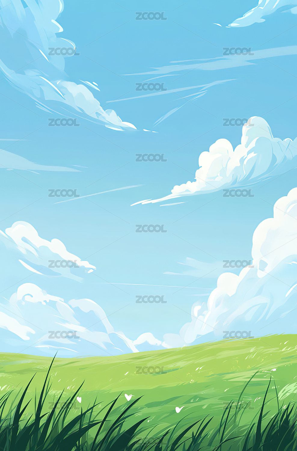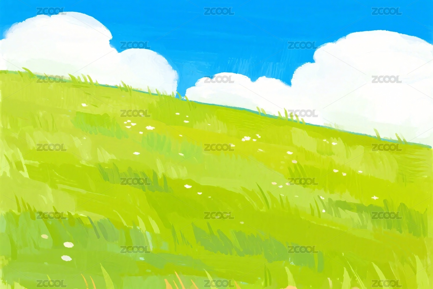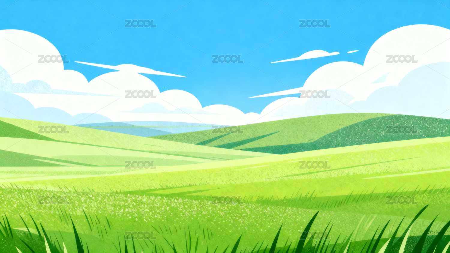 蓝天白云草地插画