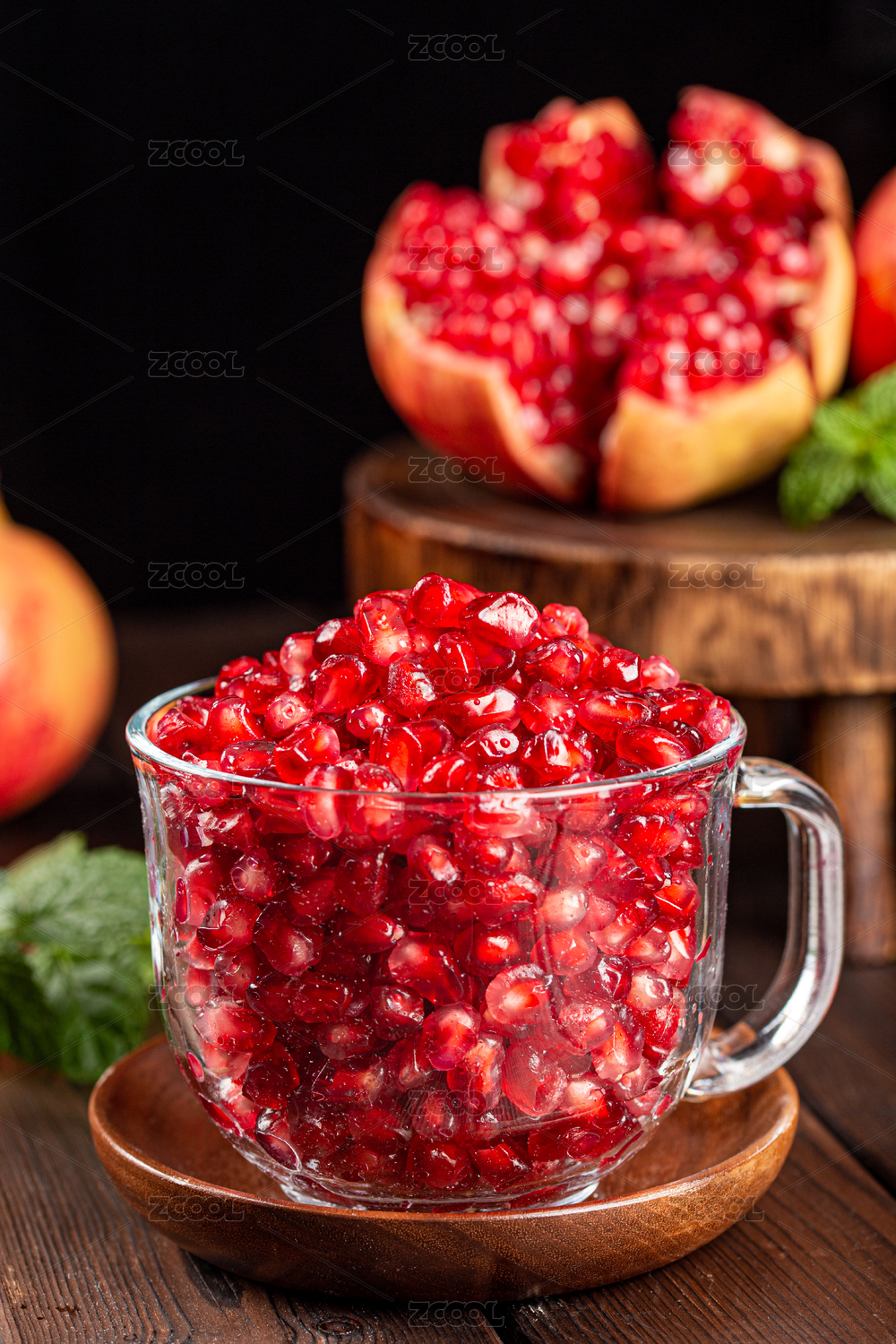 木底上的一碟粉籽石榴