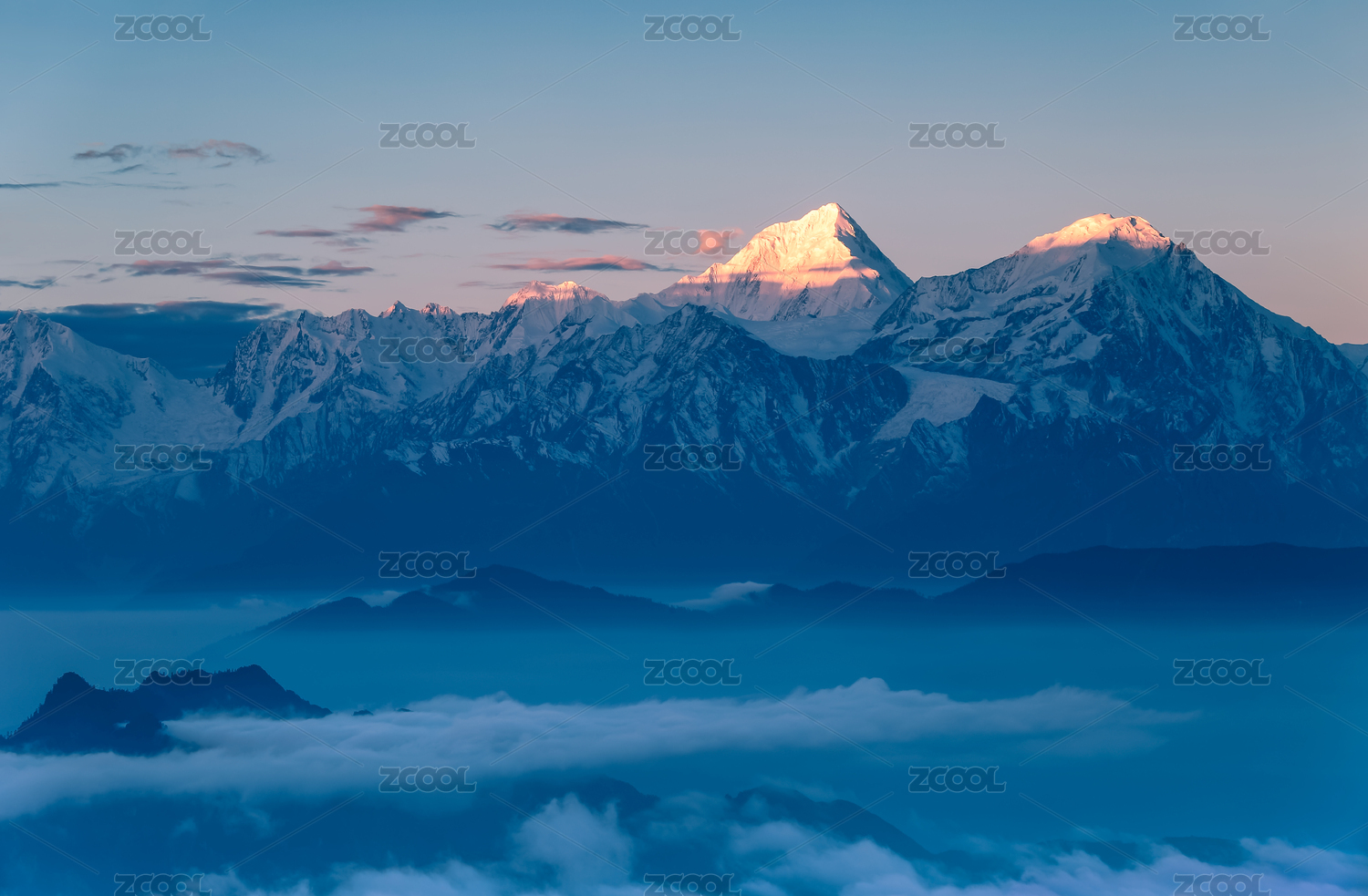 中国四川省甘孜州华尖山眺望贡嘎山日出