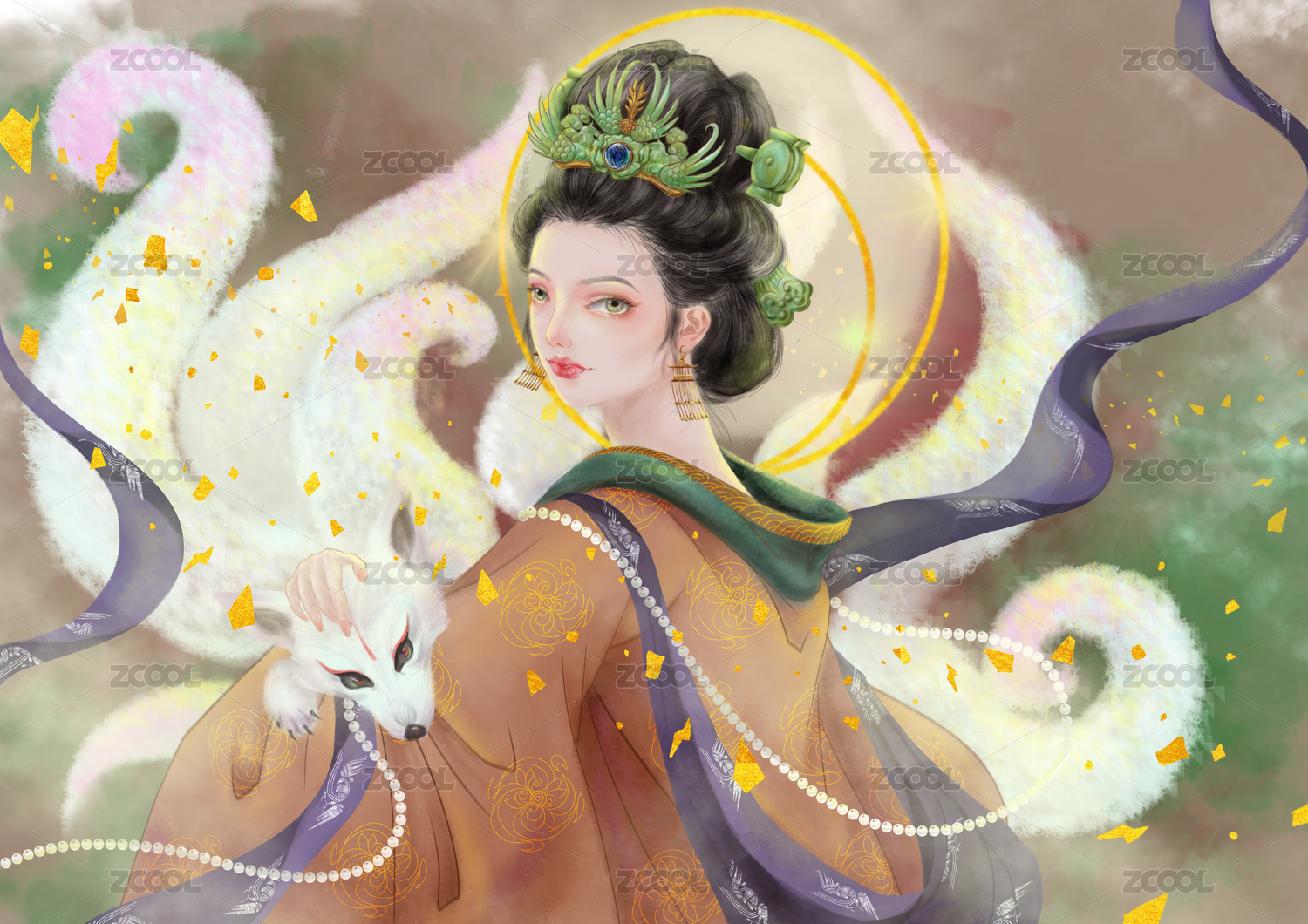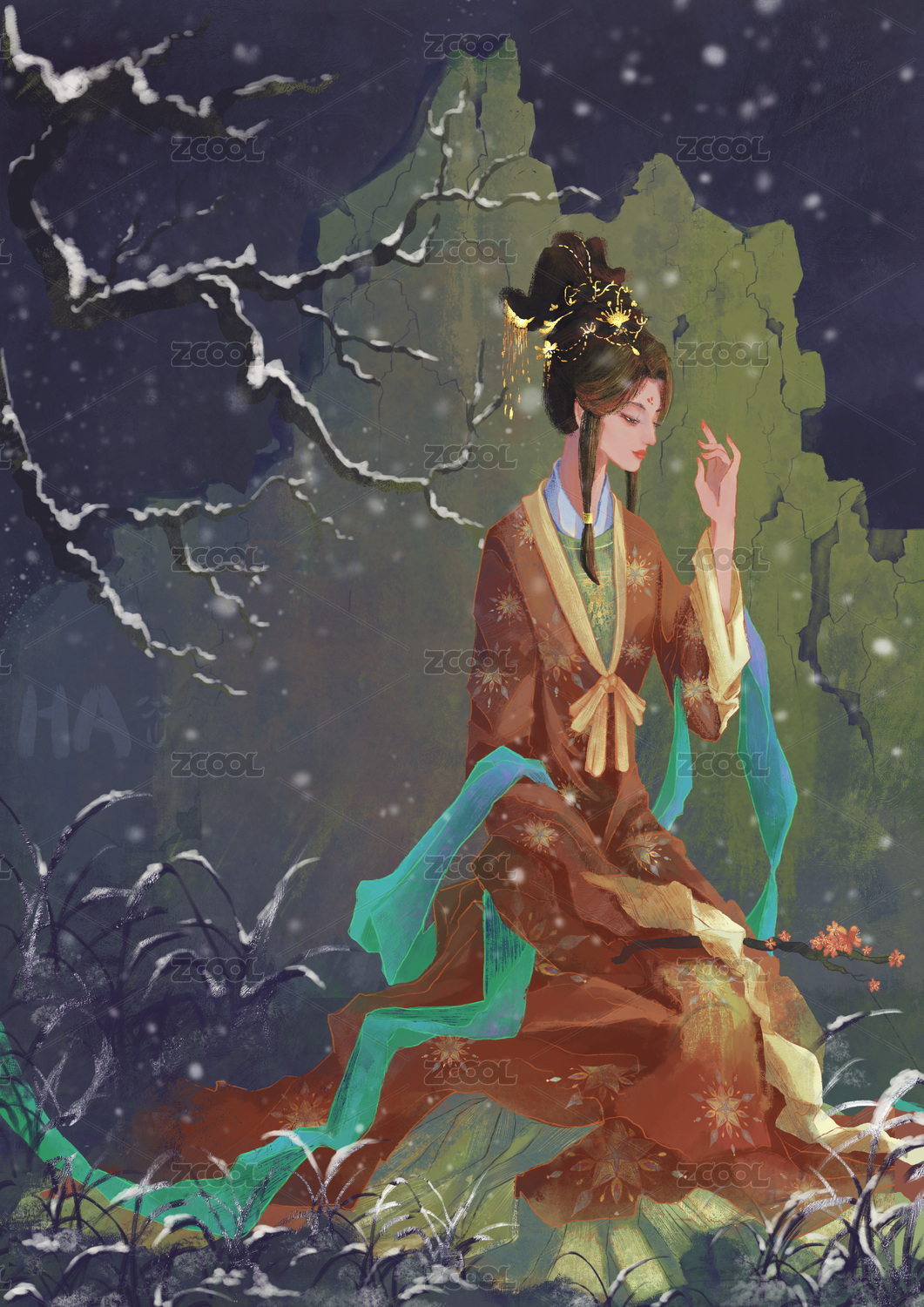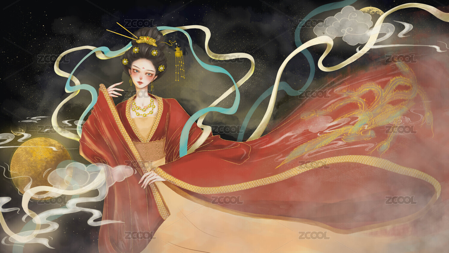 敦煌古风美女国潮汉服浓墨重彩复古华丽插画