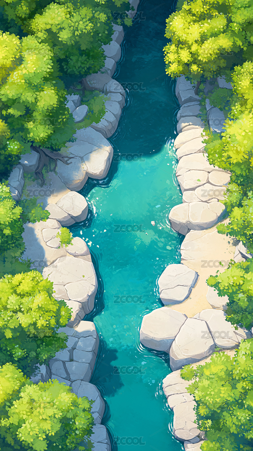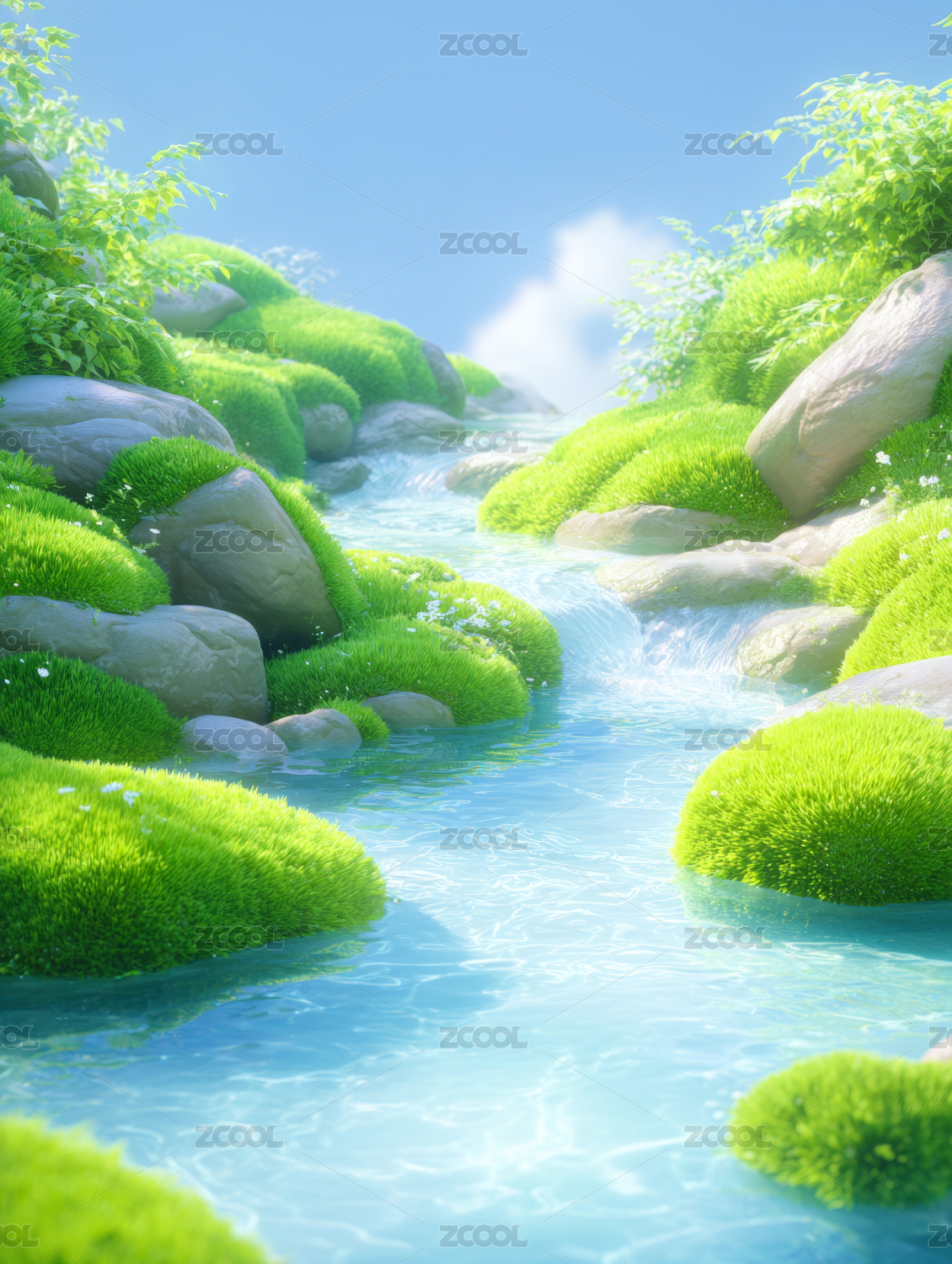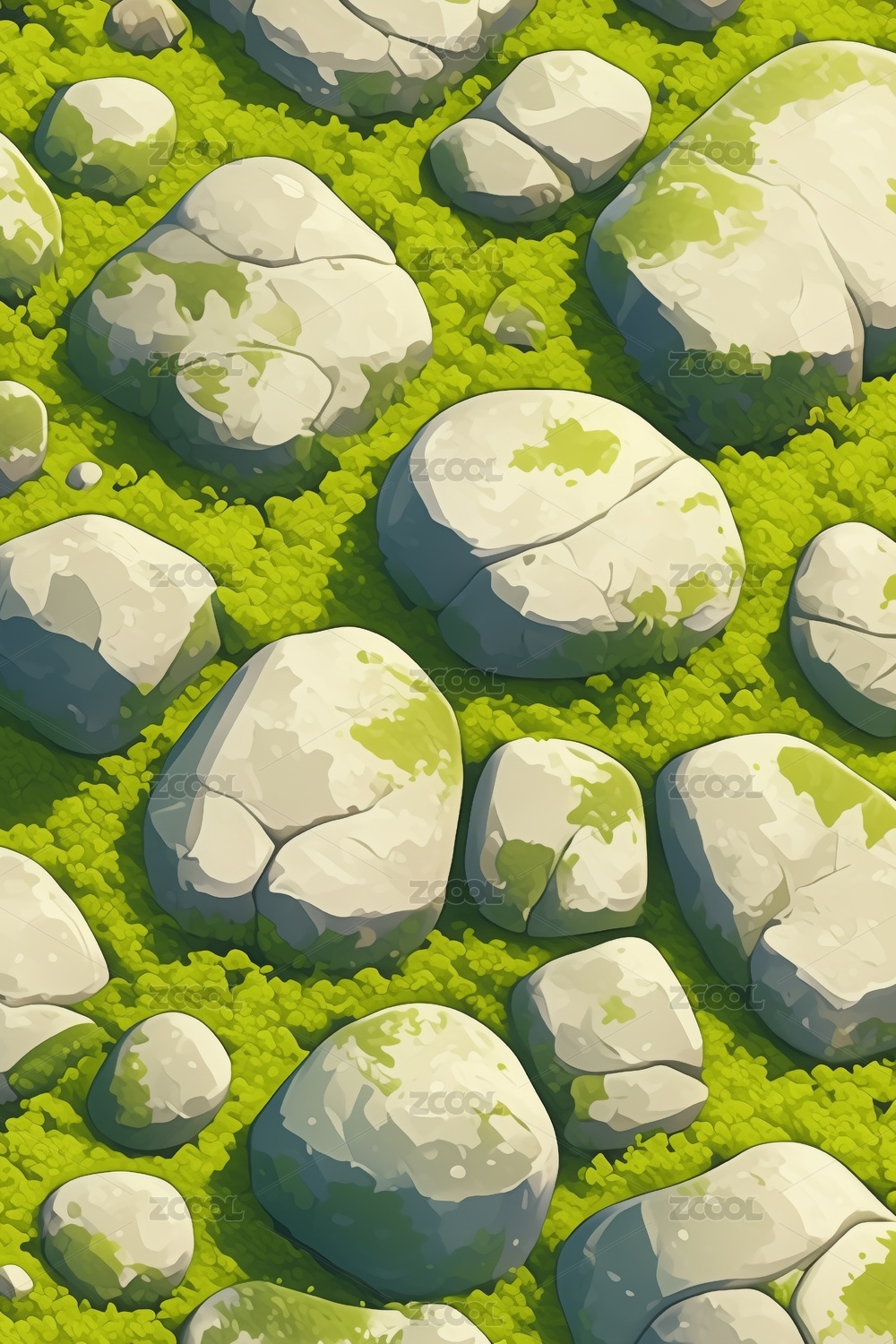 夏天清新缝隙有草碎石平铺的路面插画绘画