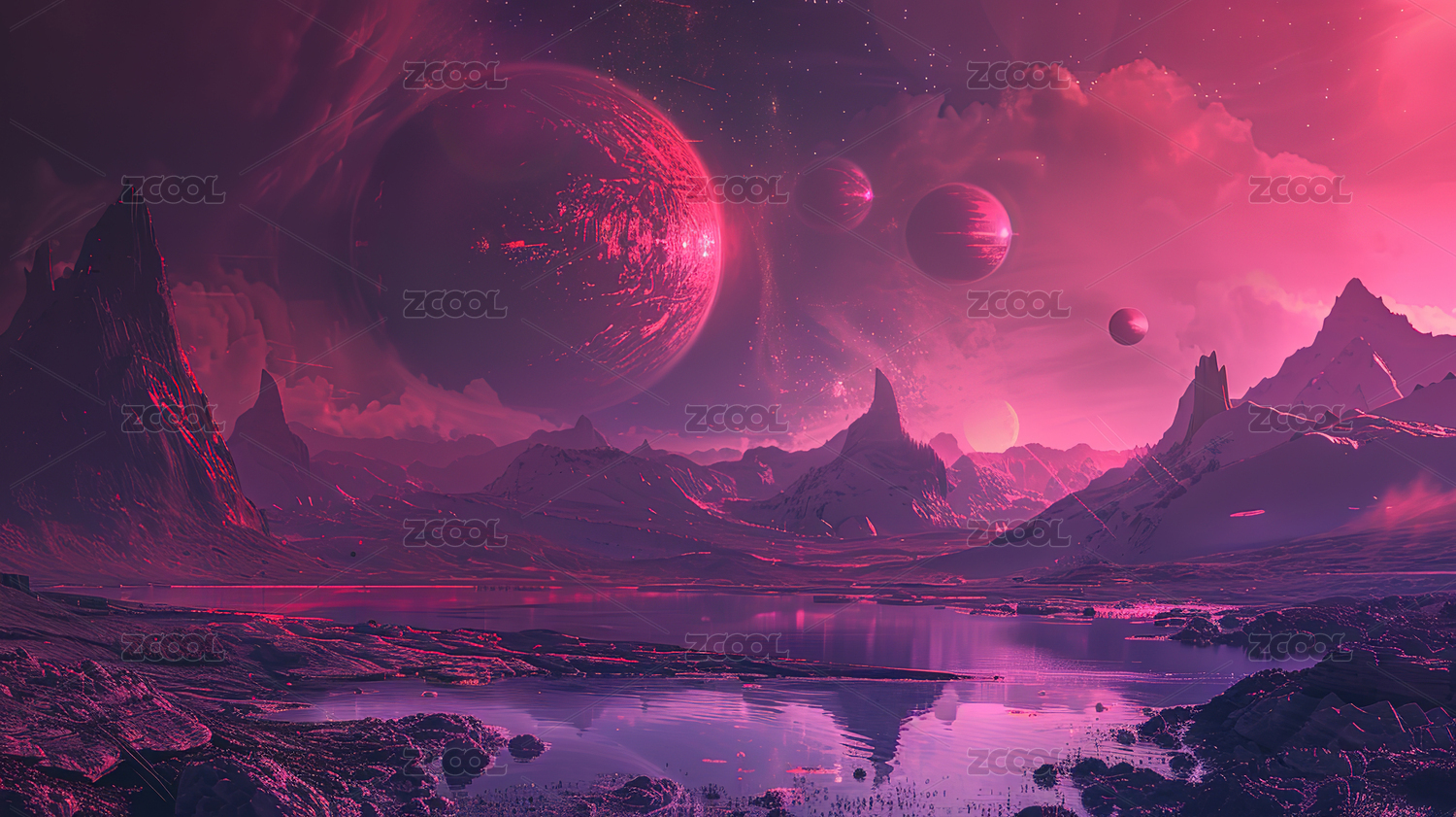 星球宇宙和山川背景