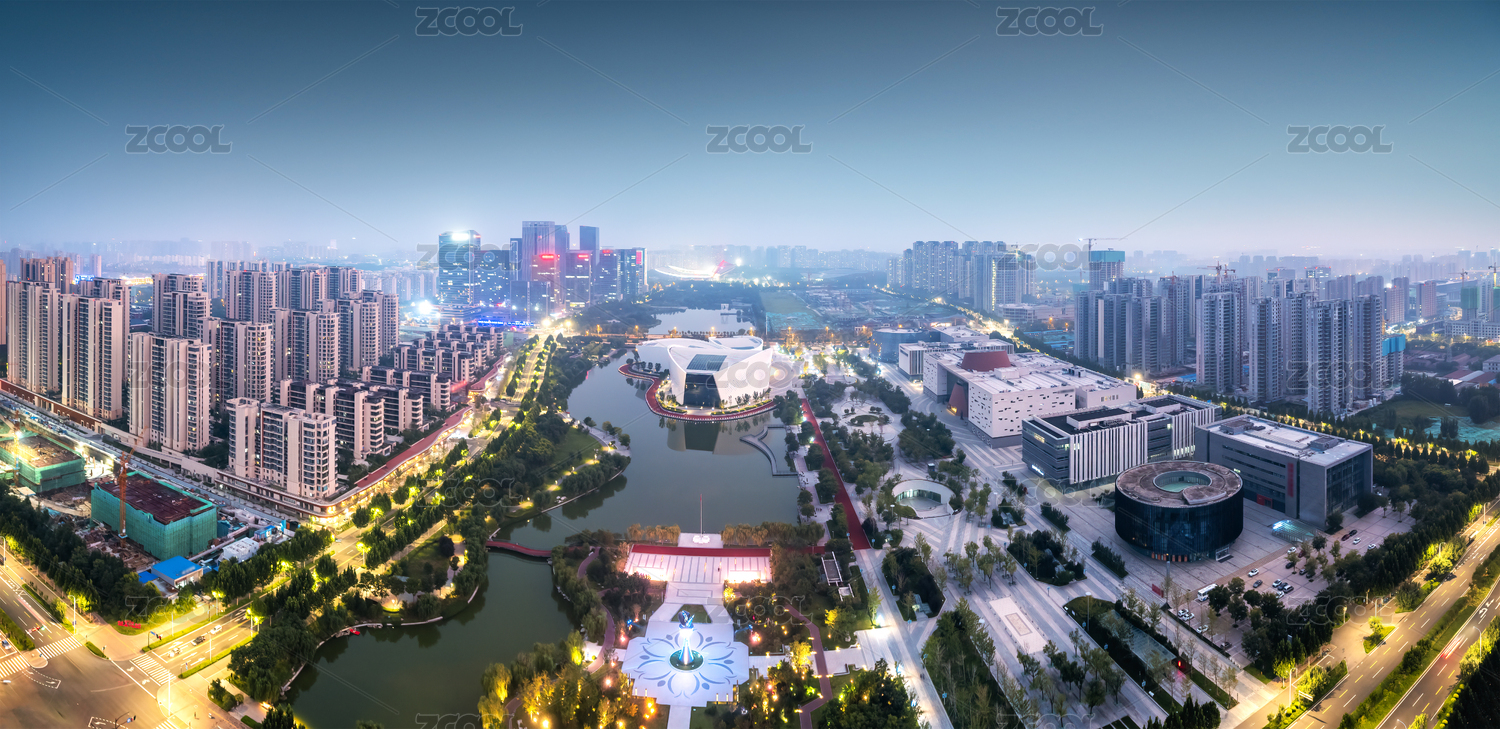 洛阳城市CBD楼房建筑天际线日出朝霞航拍