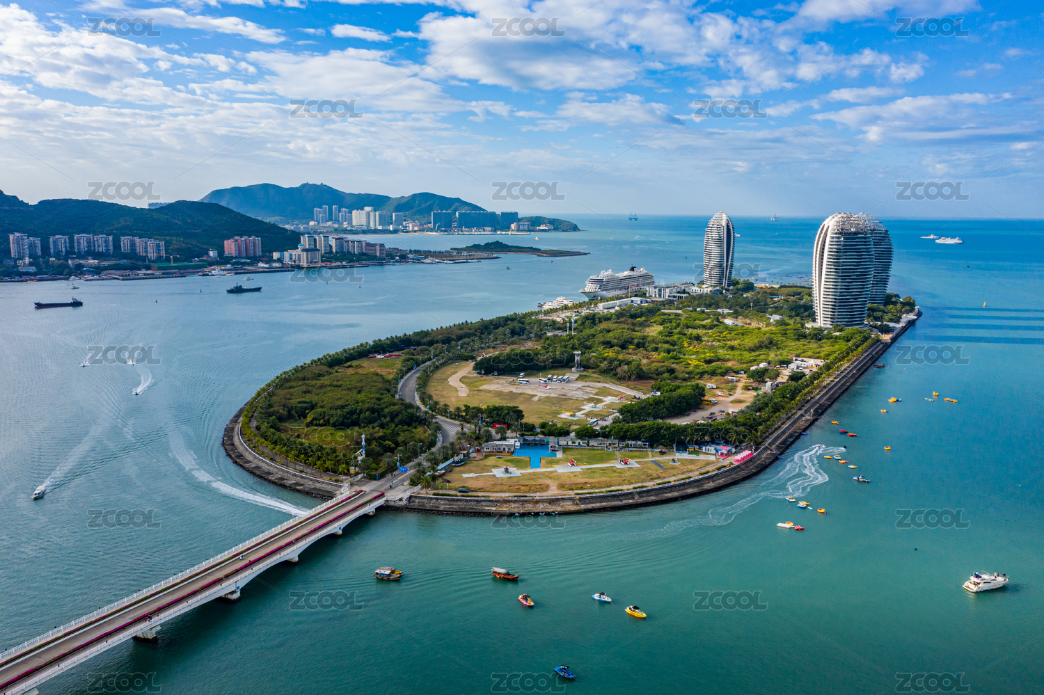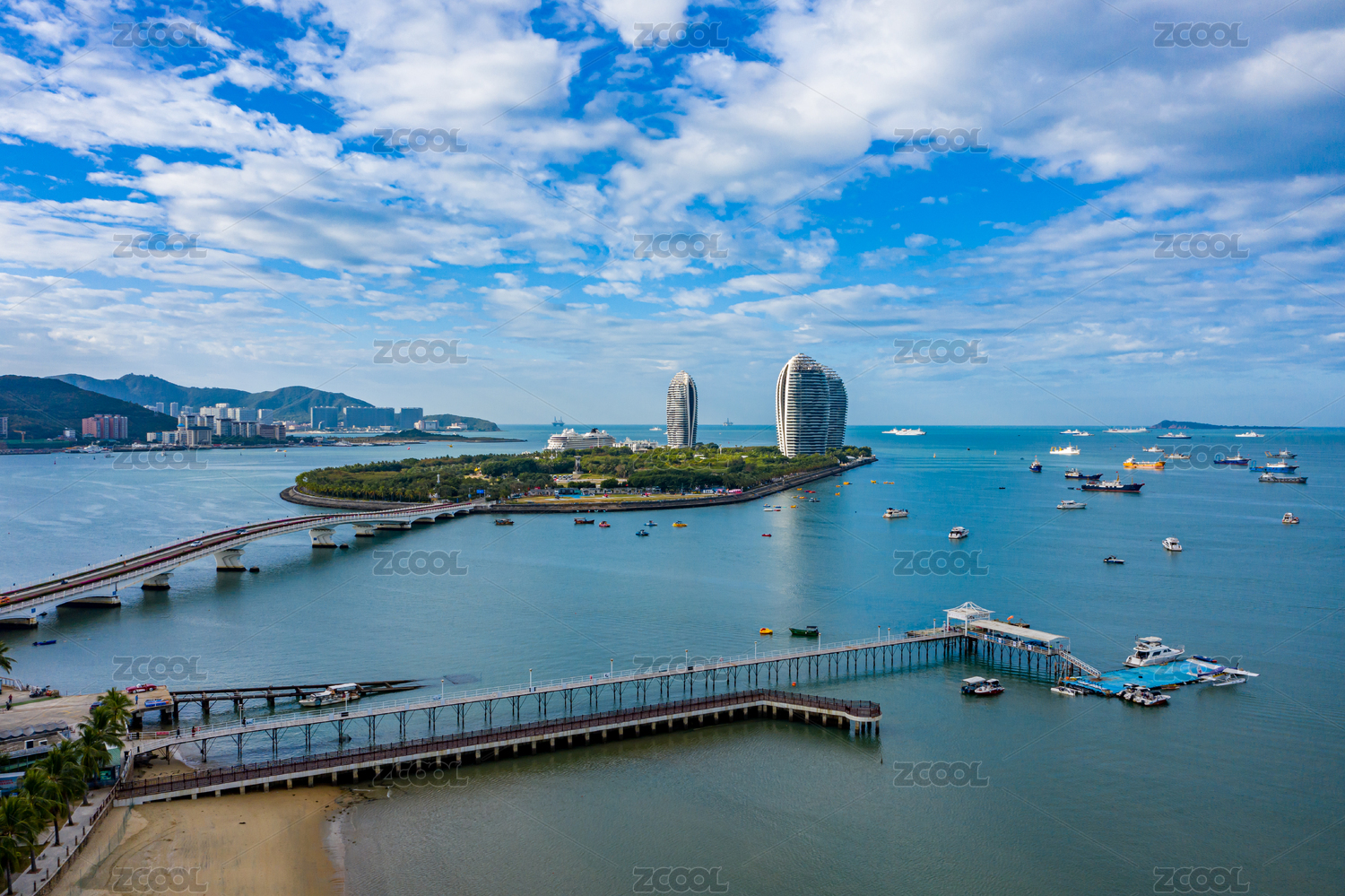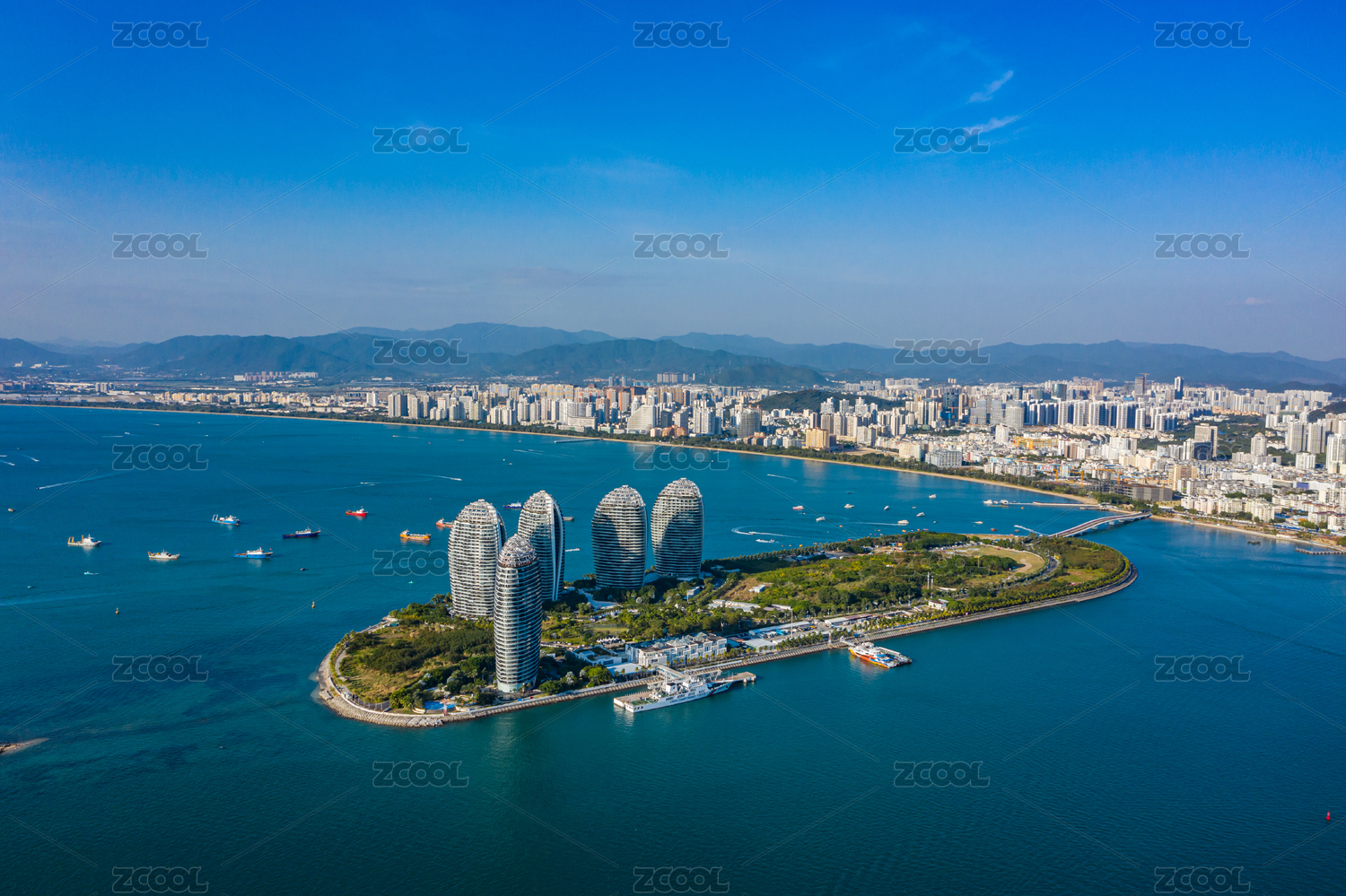 航拍海南三亚凤凰岛热带海滨人工岛度假天堂