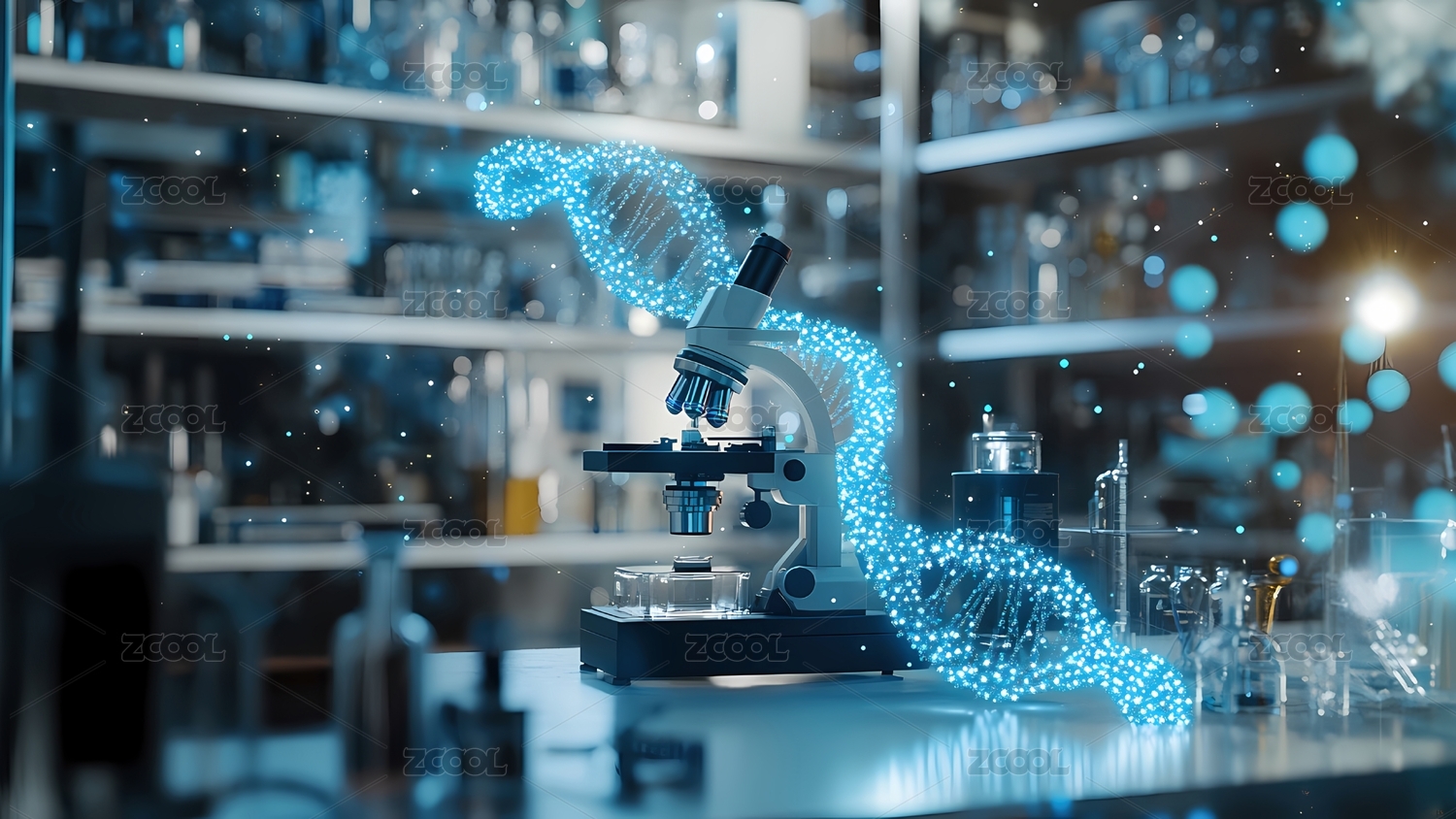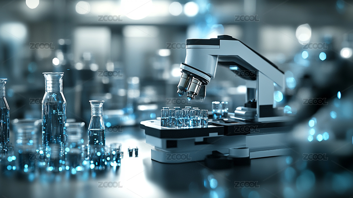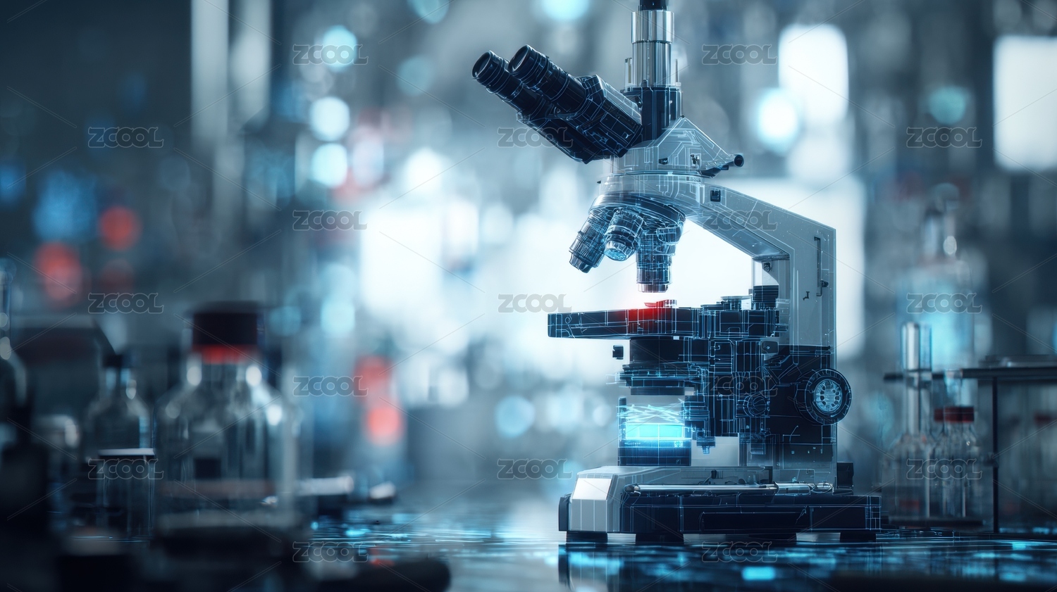 显微镜,实验室,科学,研究,技术,创新,未来感,烧杯,试管,全息