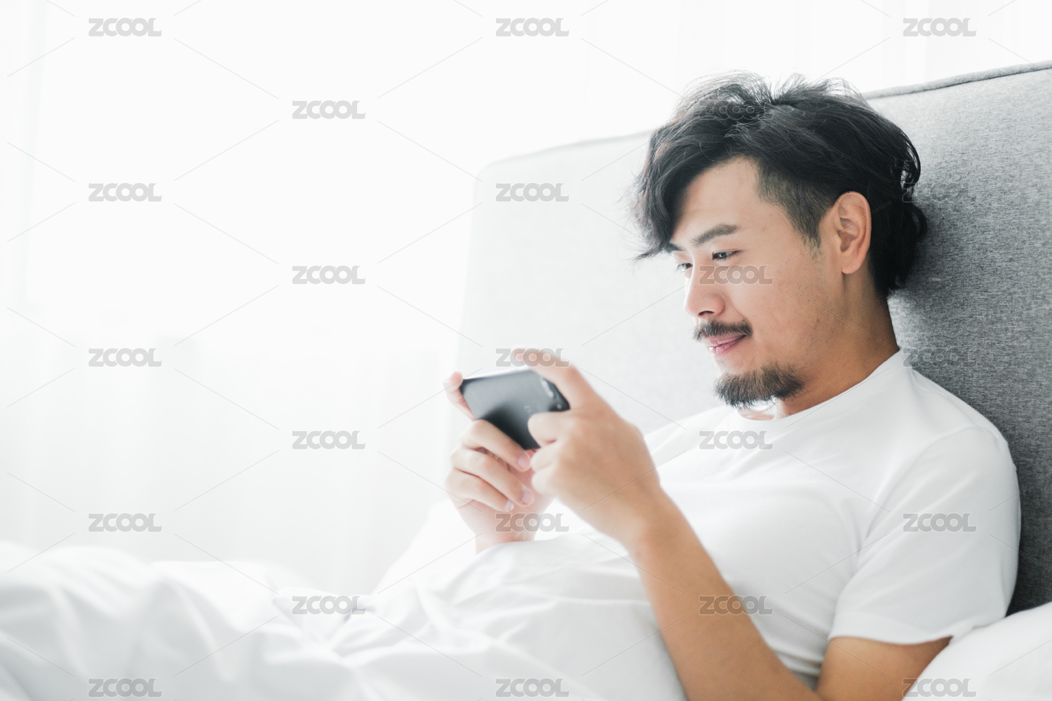 安静,白色,被子,成熟,床,电子设备,干净,光,胡子,家
