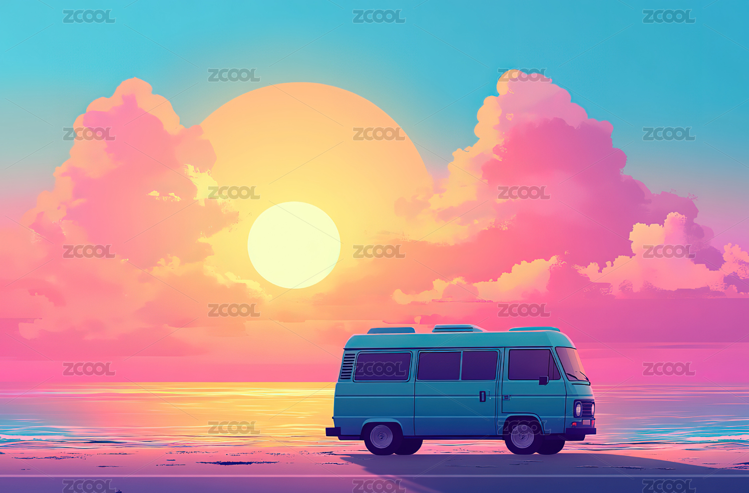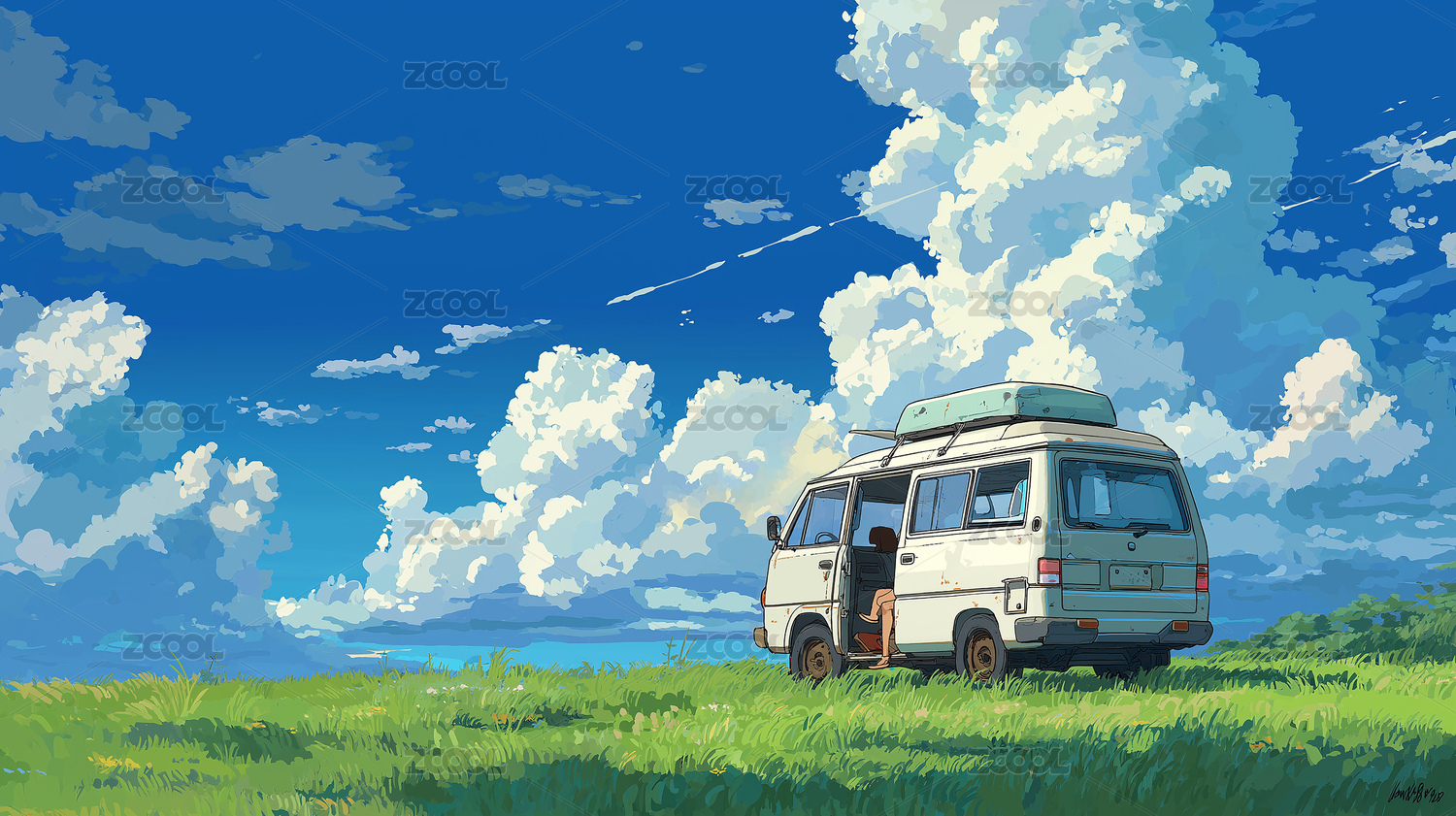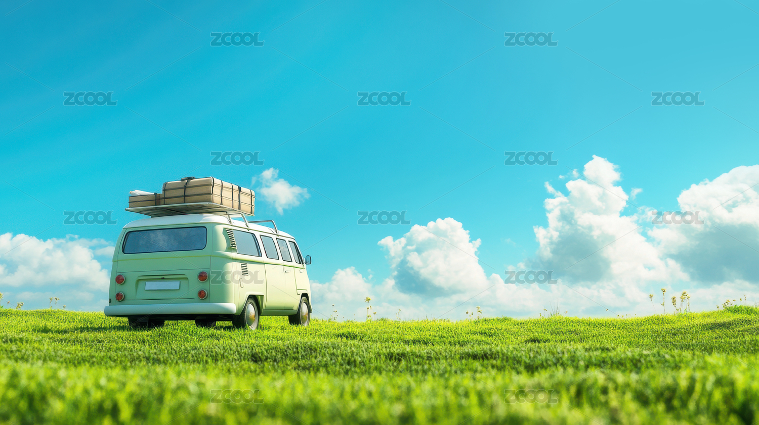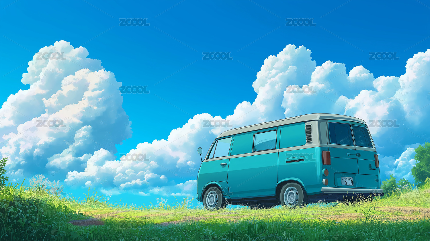 复古面包车,蓝天,白云,绿草,怀旧,旅行,自然,风景,壁纸,艺术