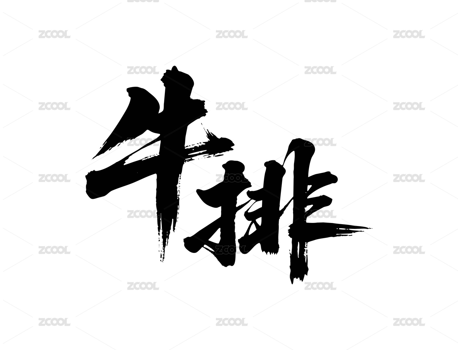 牛排矢量书法手写毛笔字