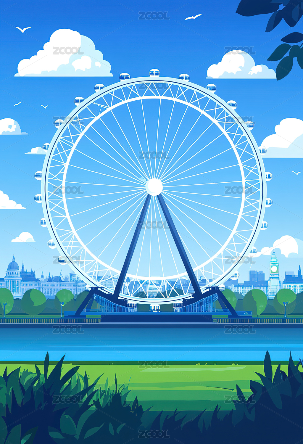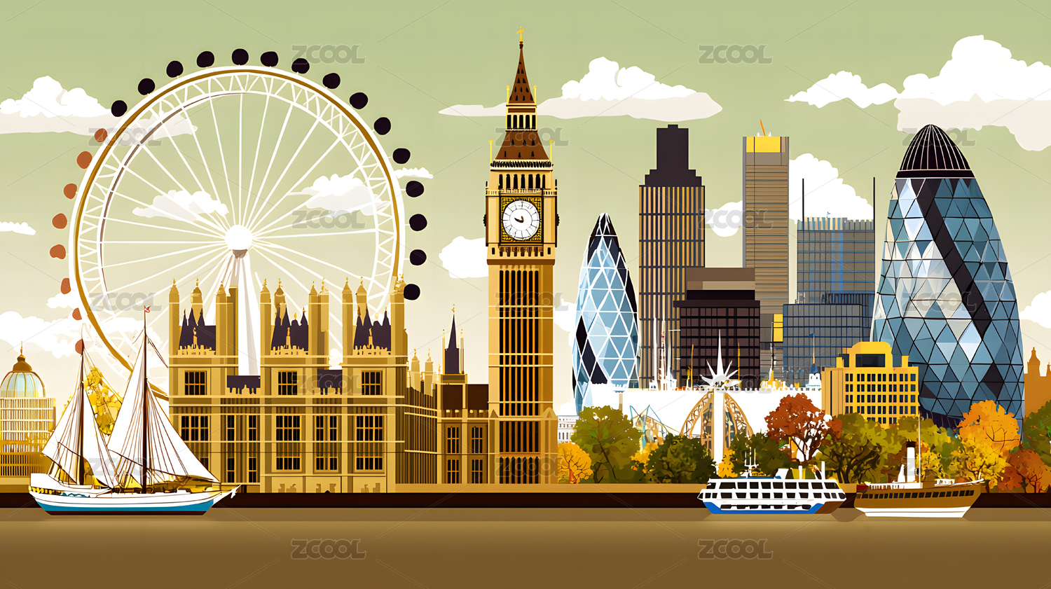 伦敦城市风光插画