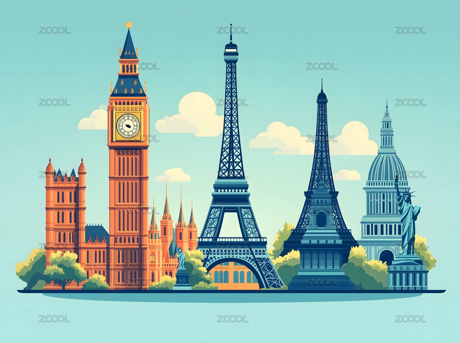 全球知名地标性建筑插画