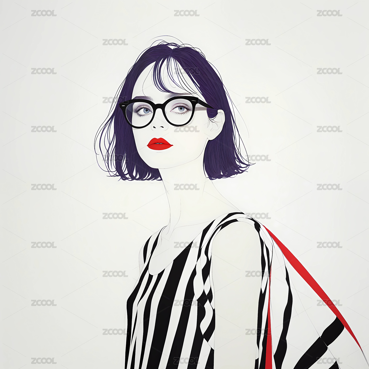 人物,墨镜,短发,时尚,女孩,美女,头像,插画