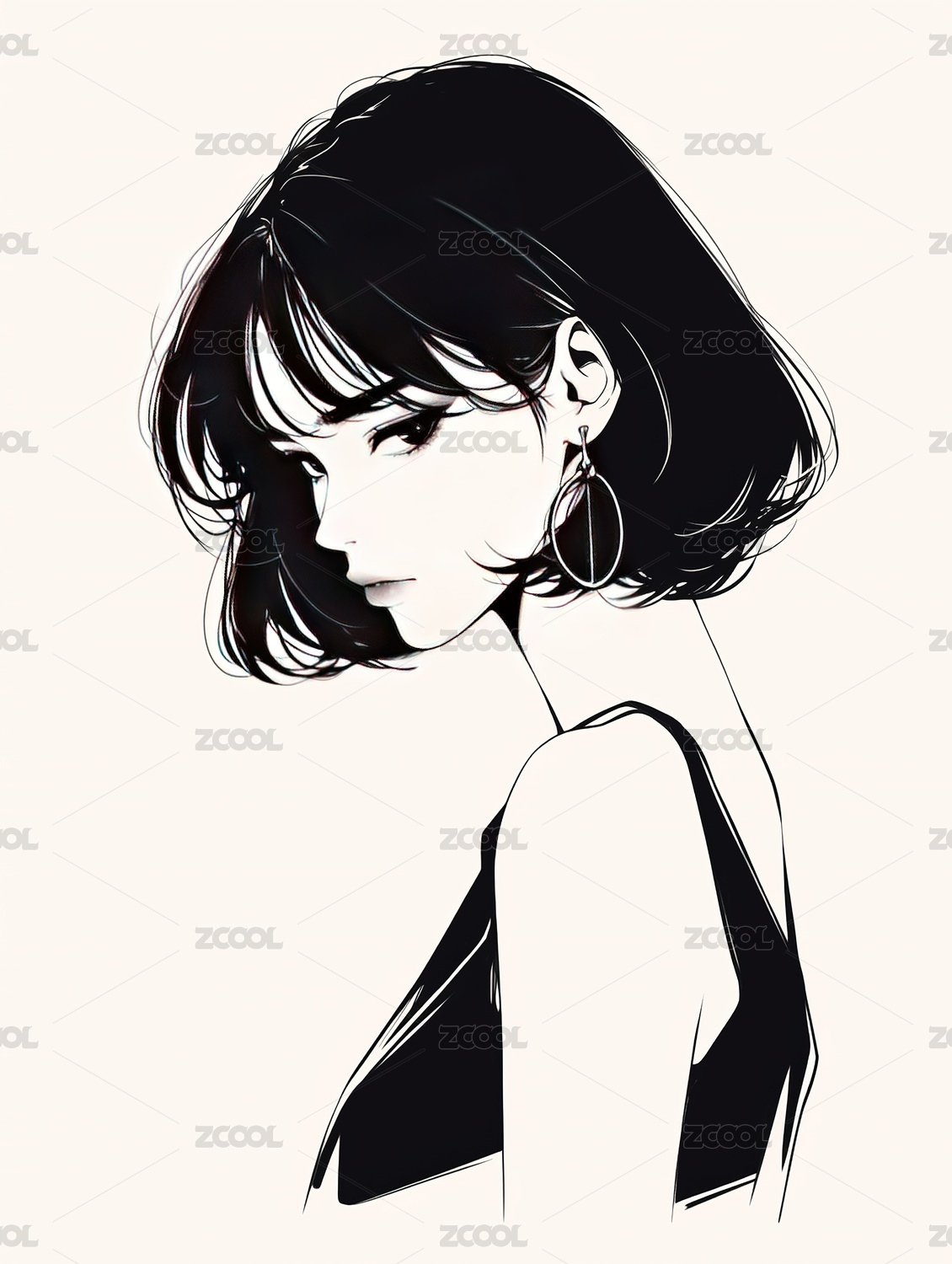 在这幅迷人的女性黑白插画中发现永恒的优雅