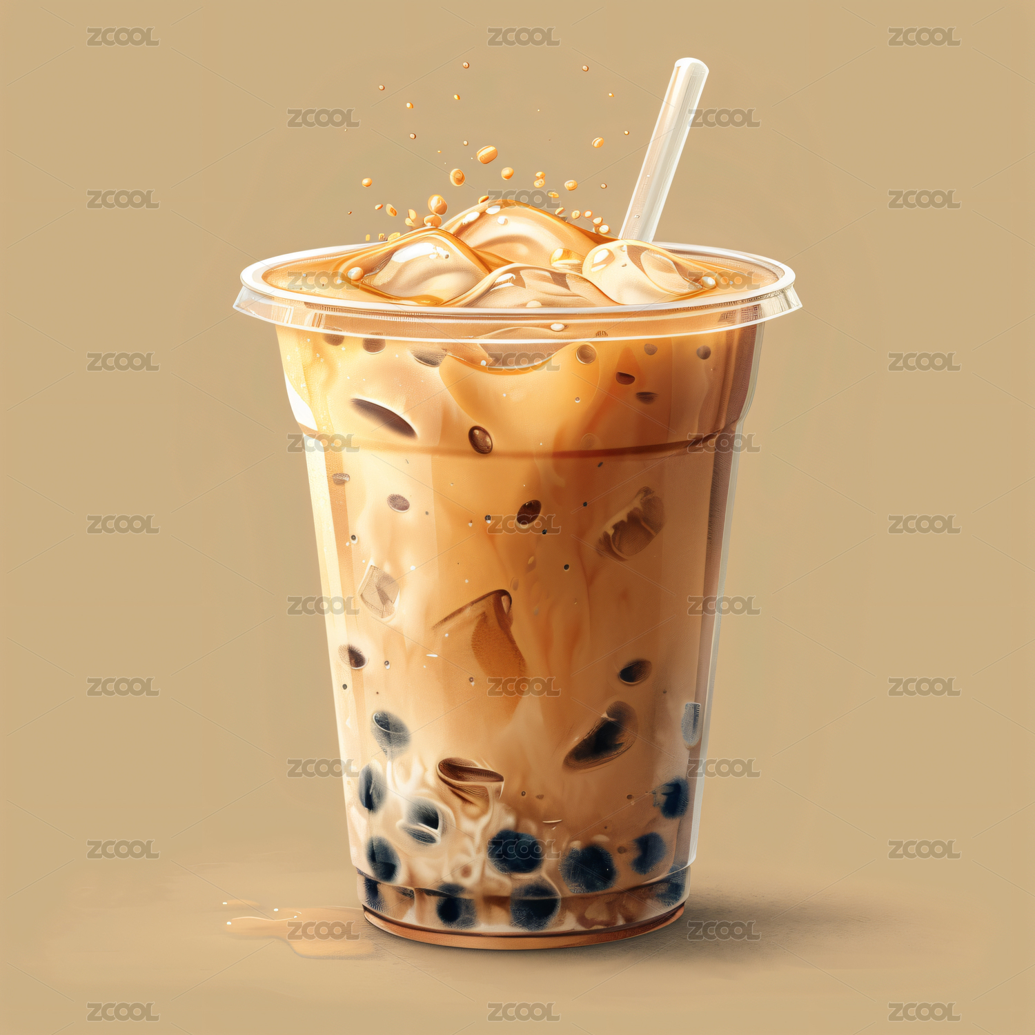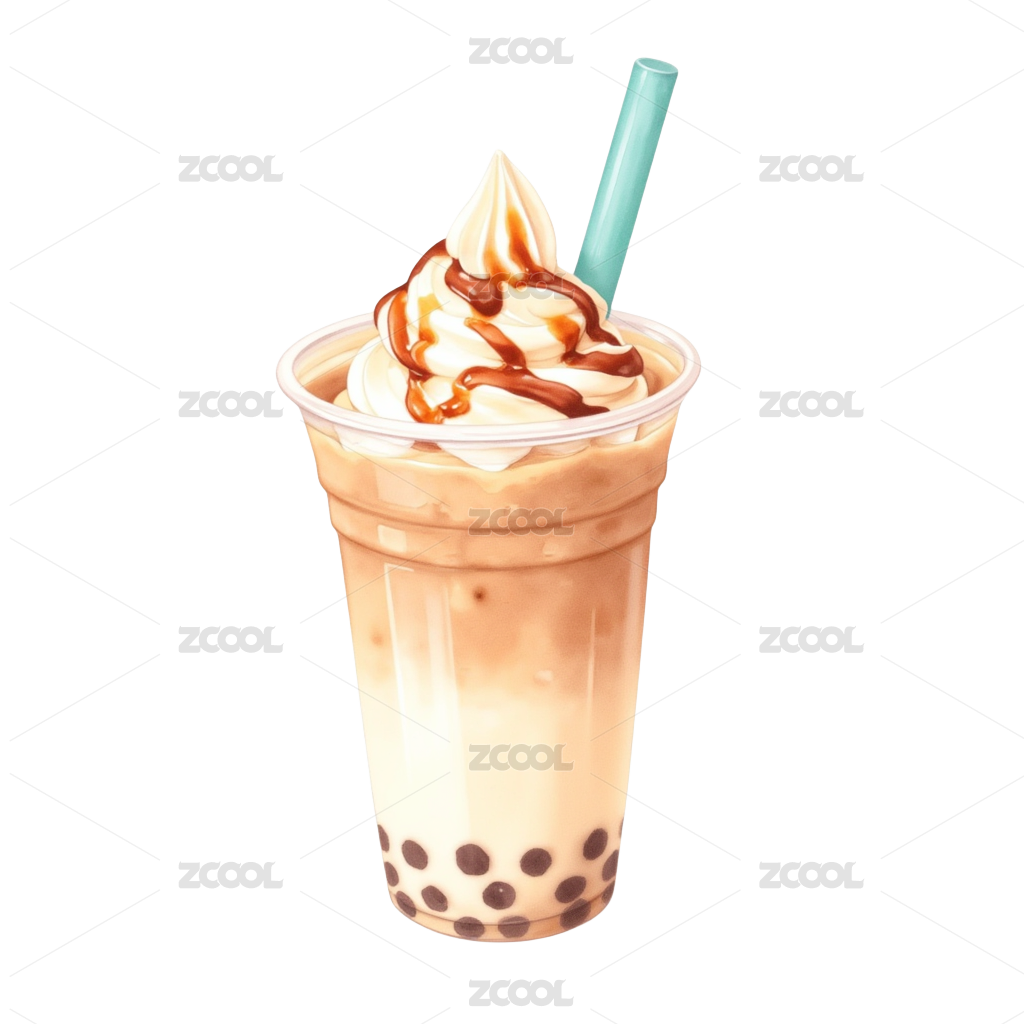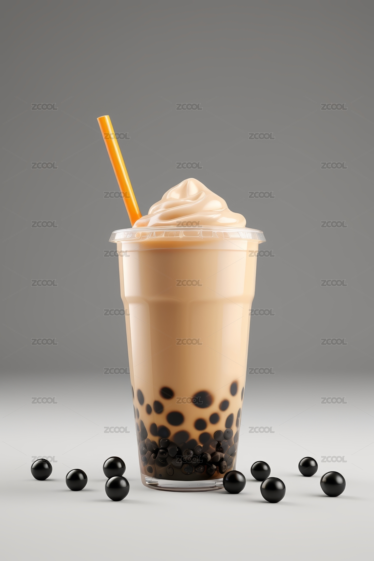 有一杯泡泡茶里面有稻草和黑莓高清图片