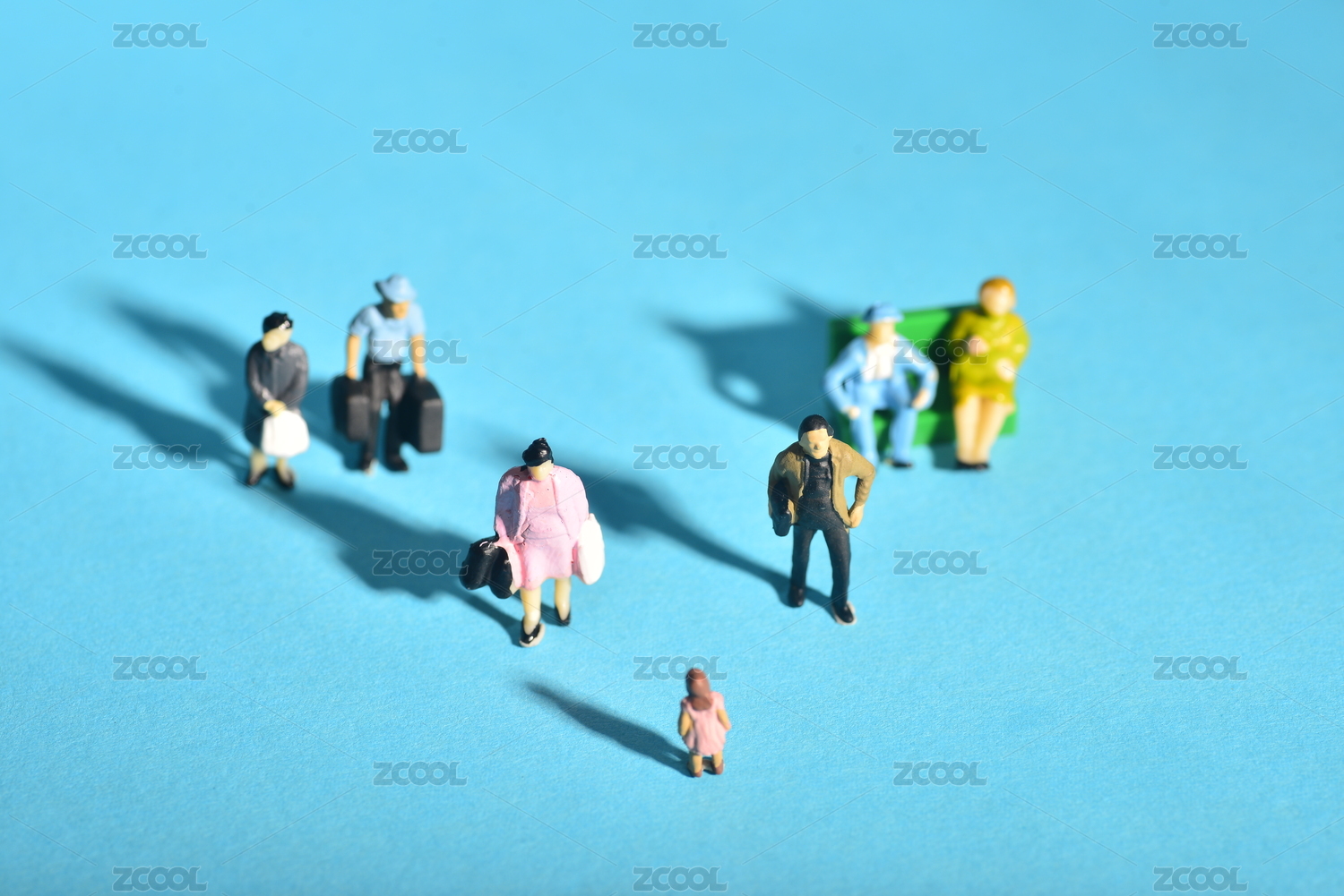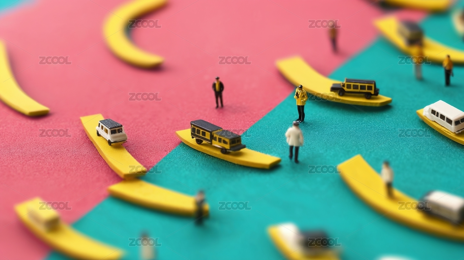 橘黄色背景上的微缩创意摄影关于地摊经济