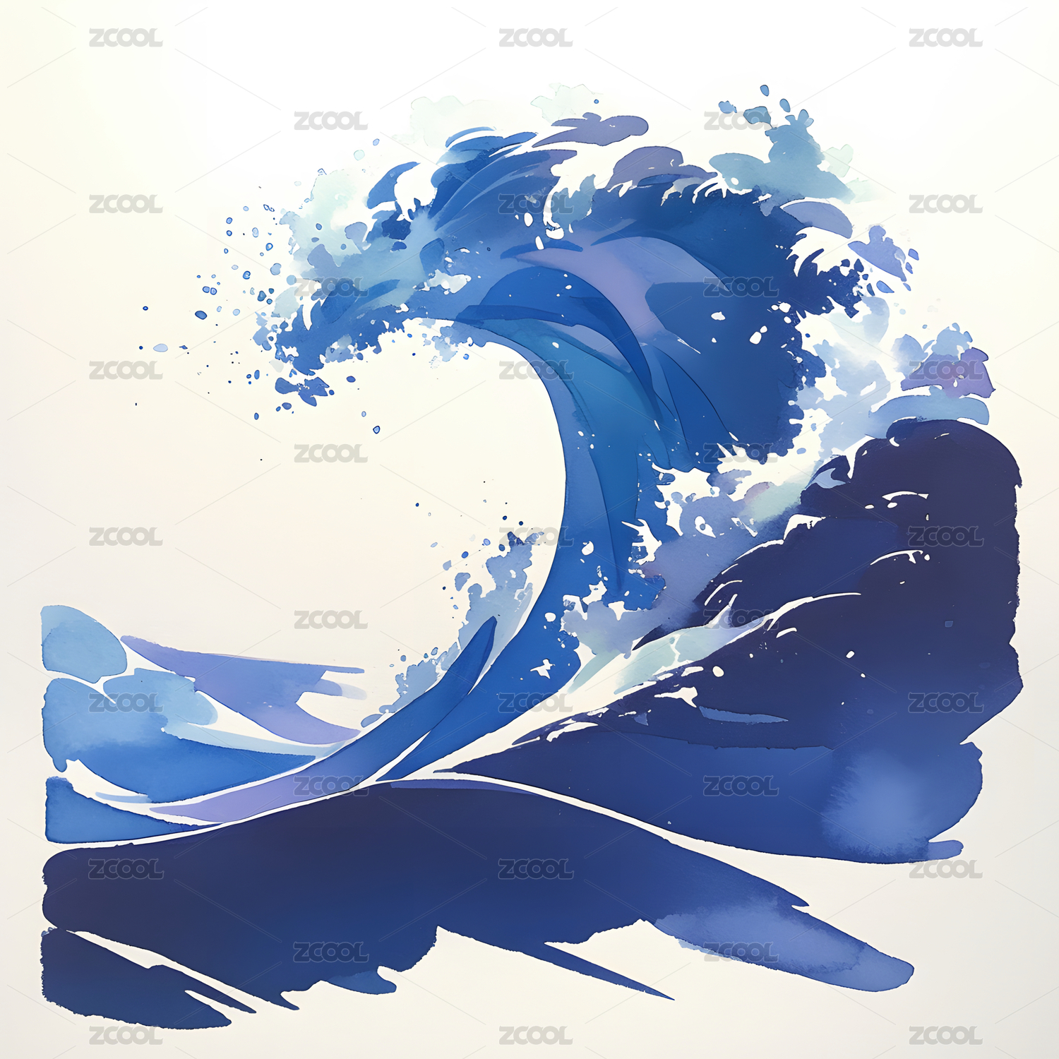 蓝色,插画,浪花,海水,波浪,白底图,元素,海浪
