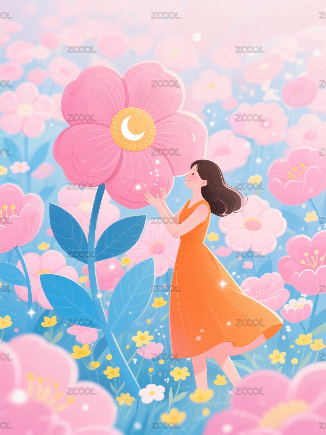 花丛,鲜花,女人,春天,春分,立春,长发,闭眼,美妆,时尚