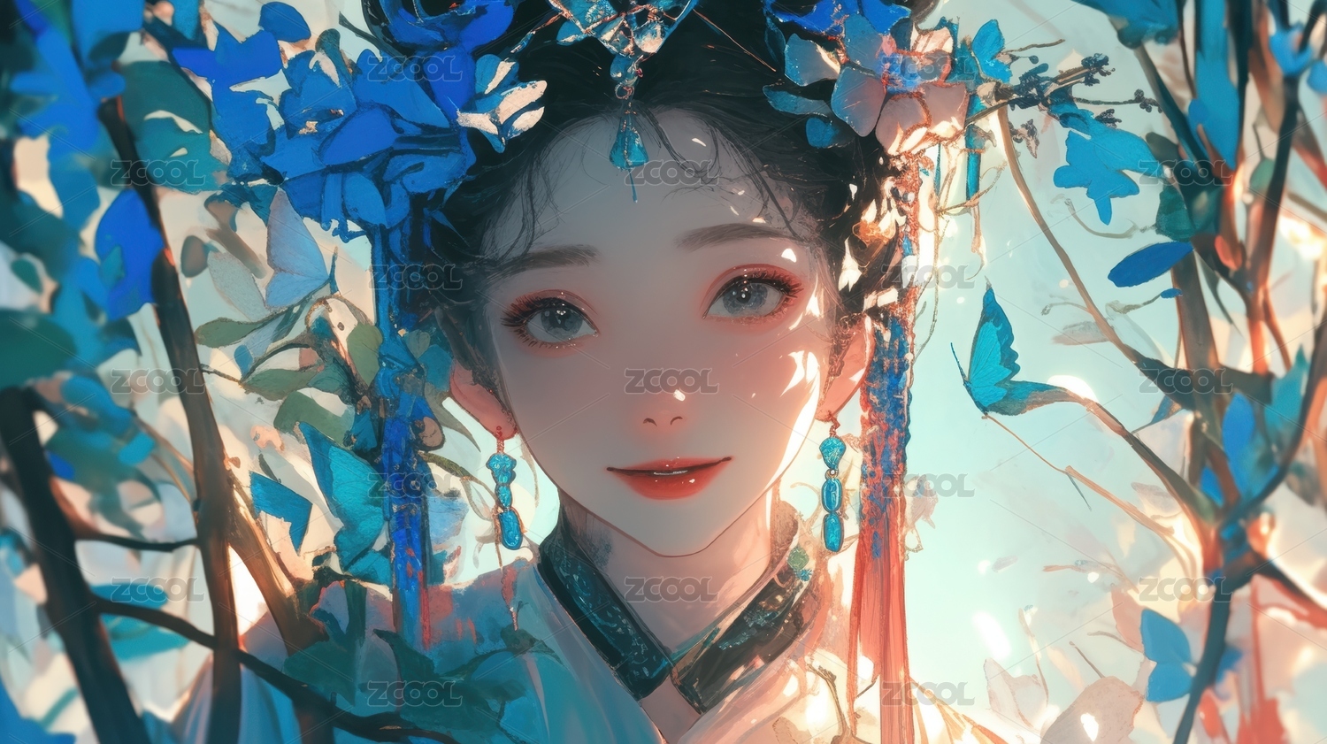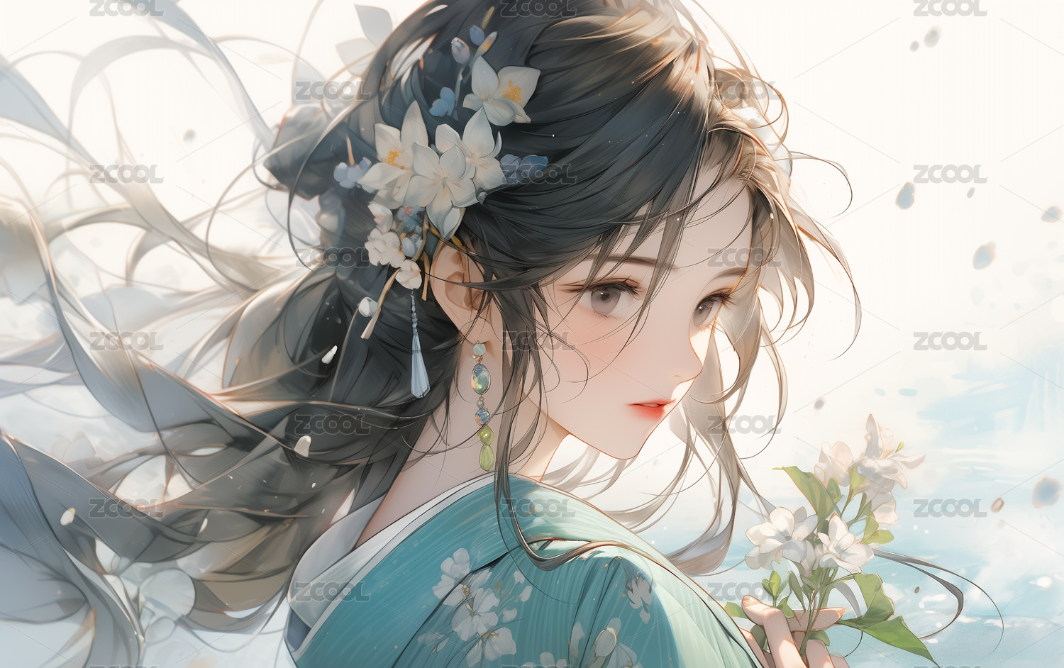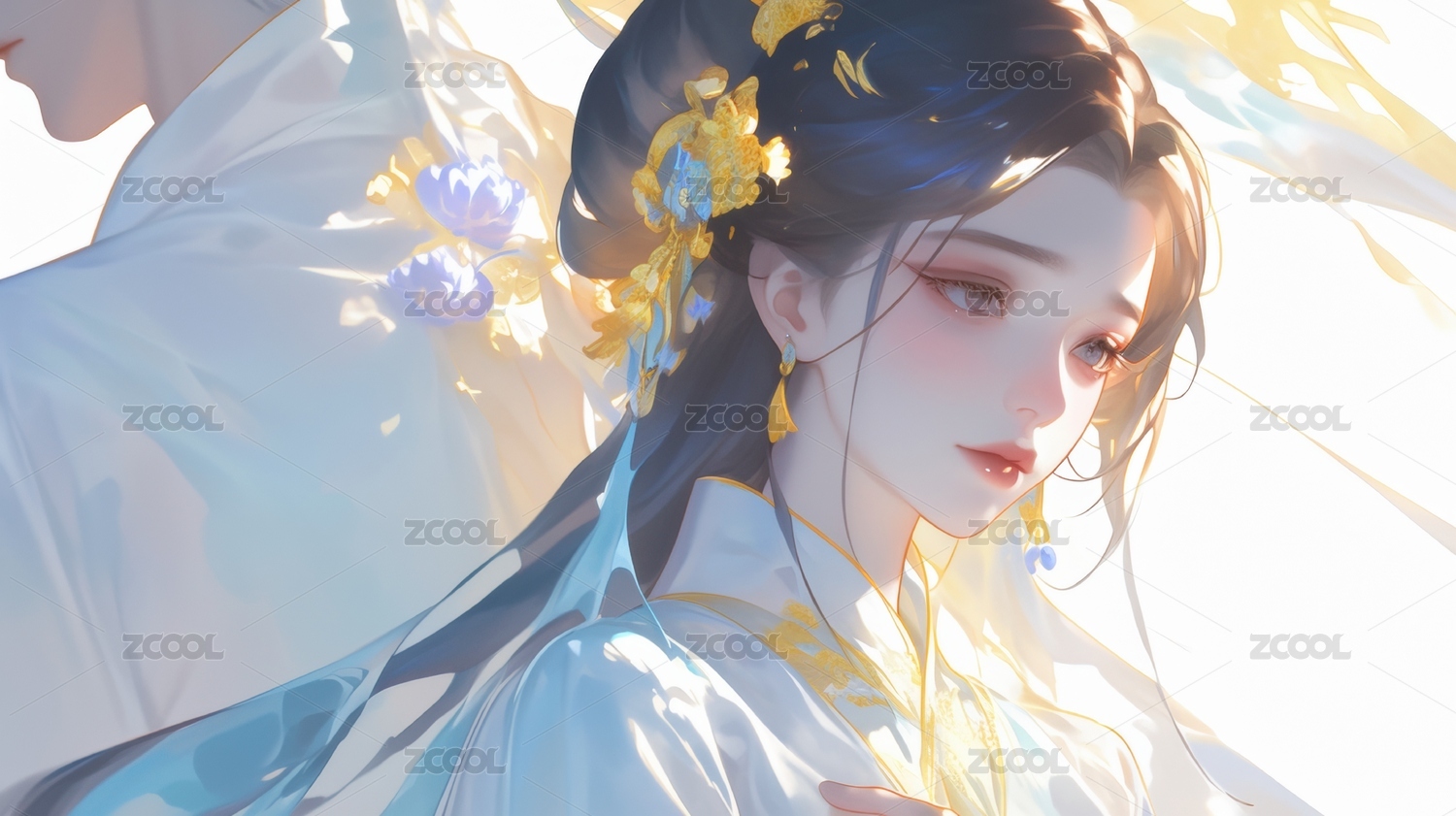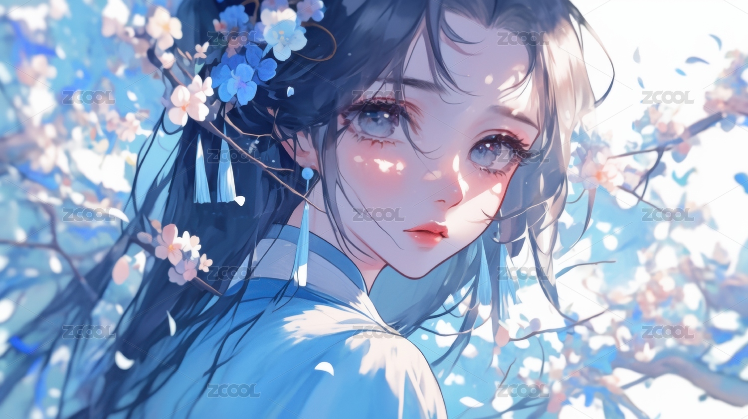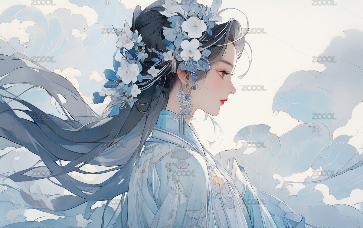 手绘卡通动漫唯美可爱的中国古风古装女孩插