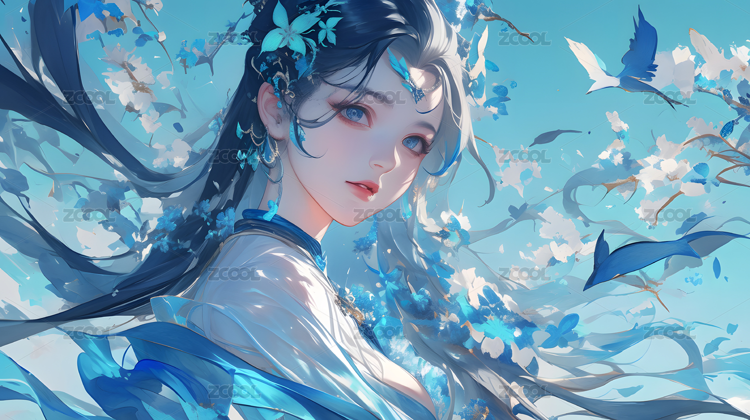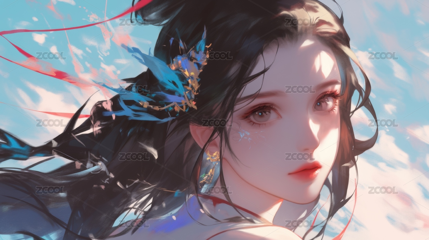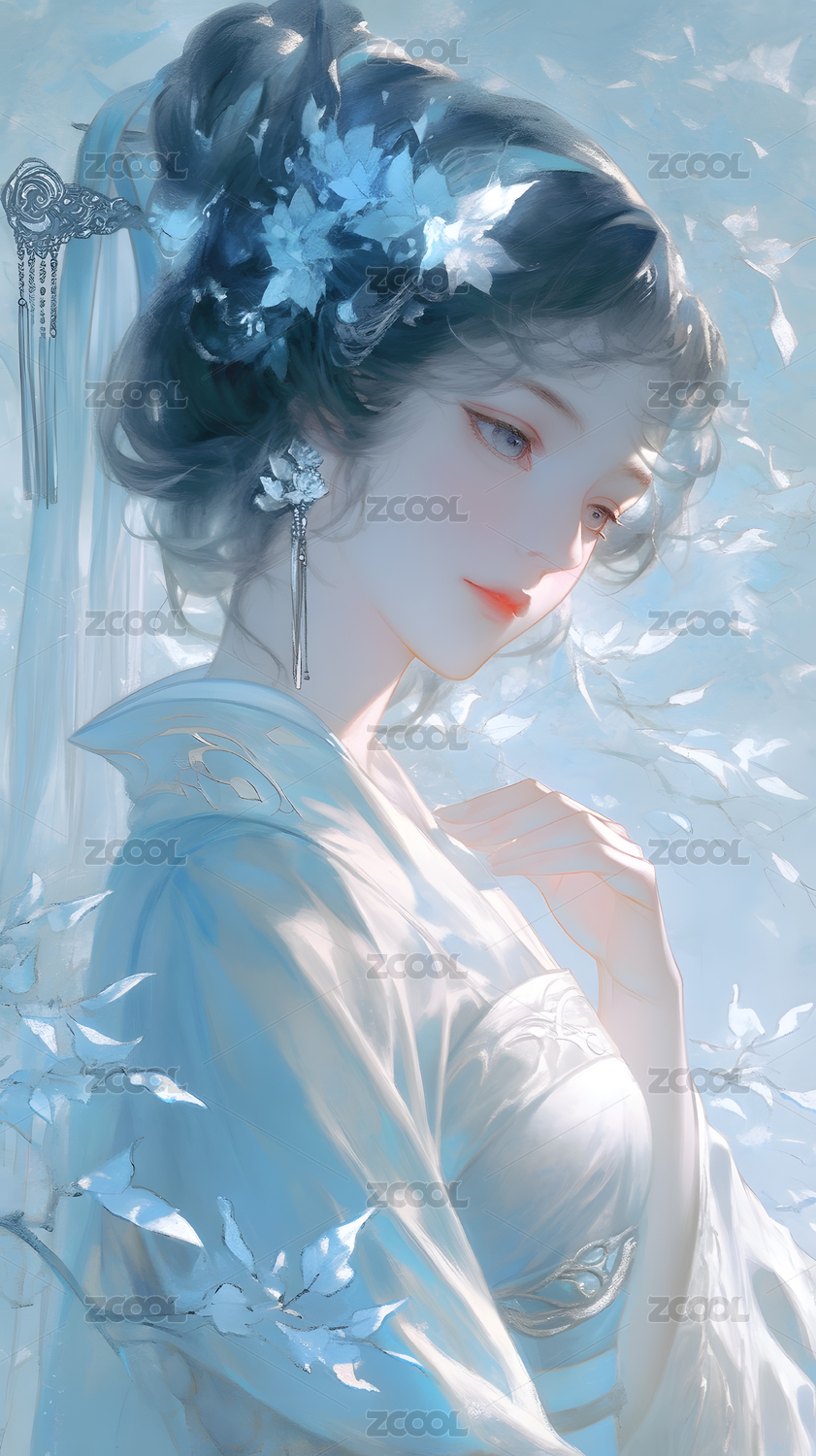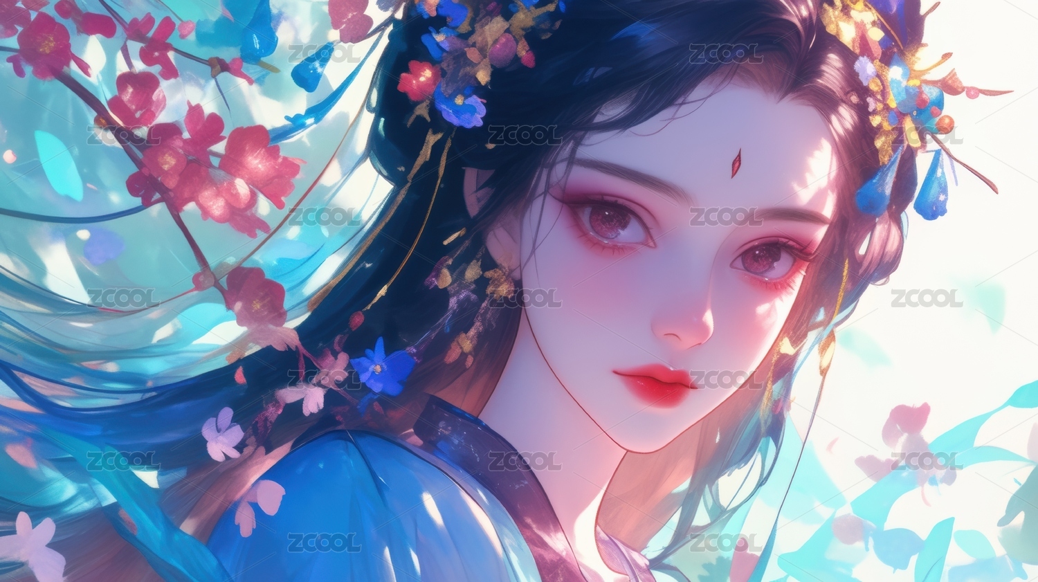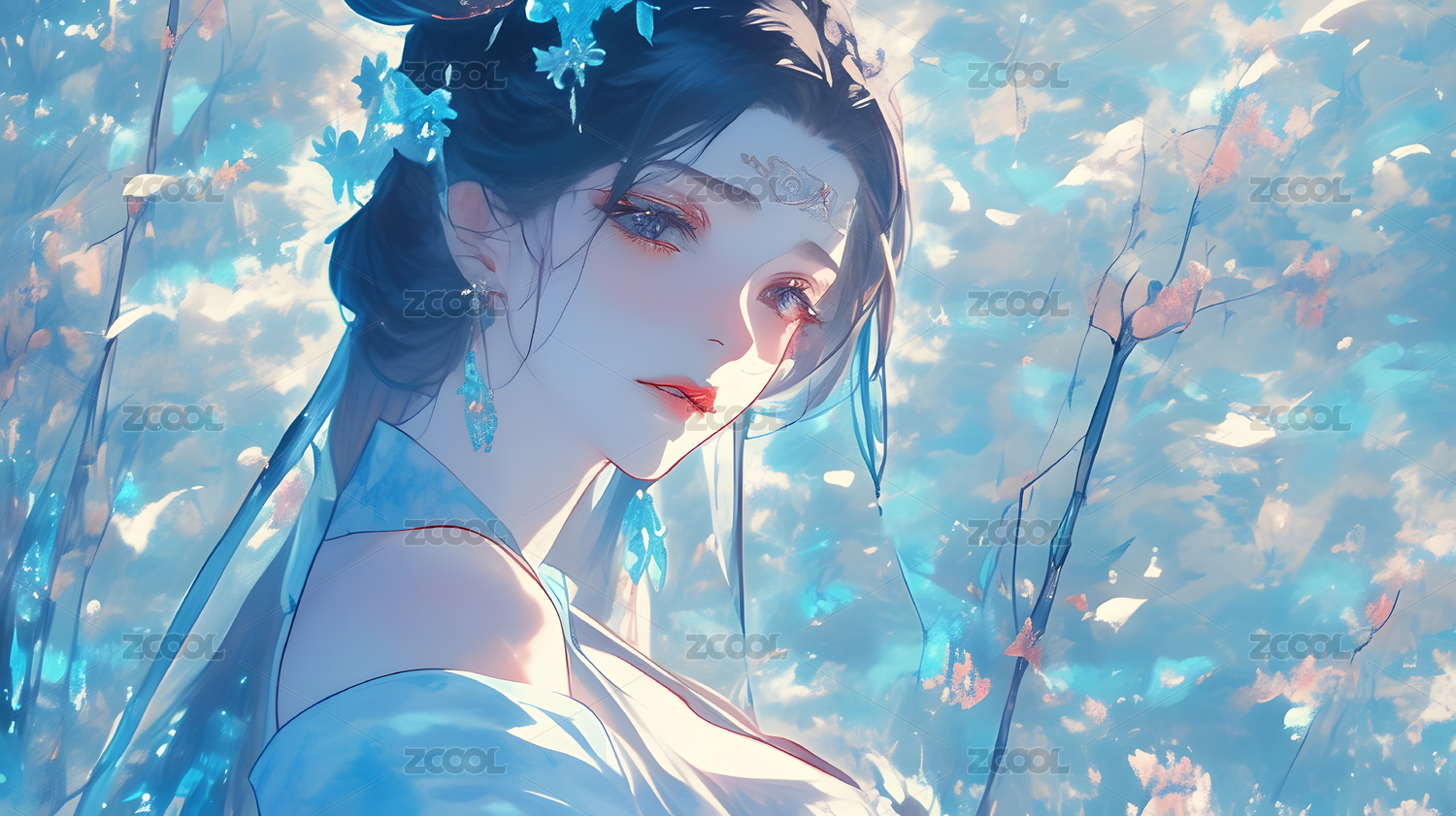 手绘卡通动漫唯美可爱的中国古风古装女孩插