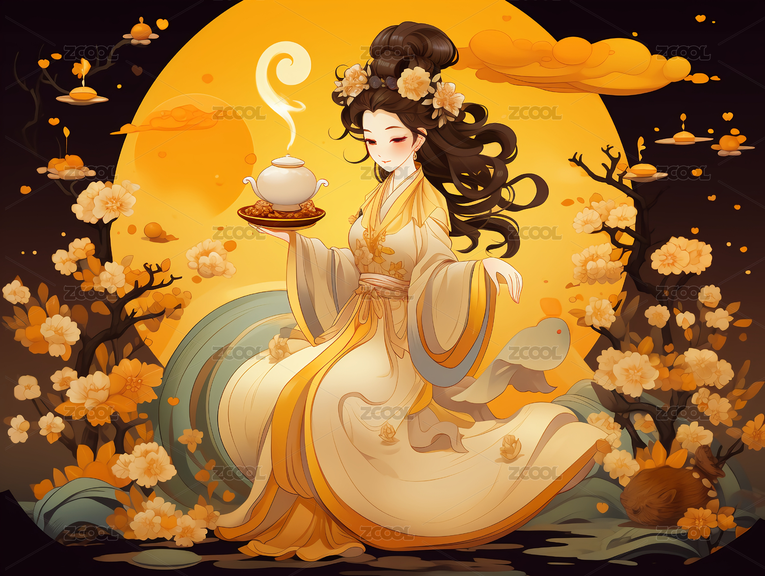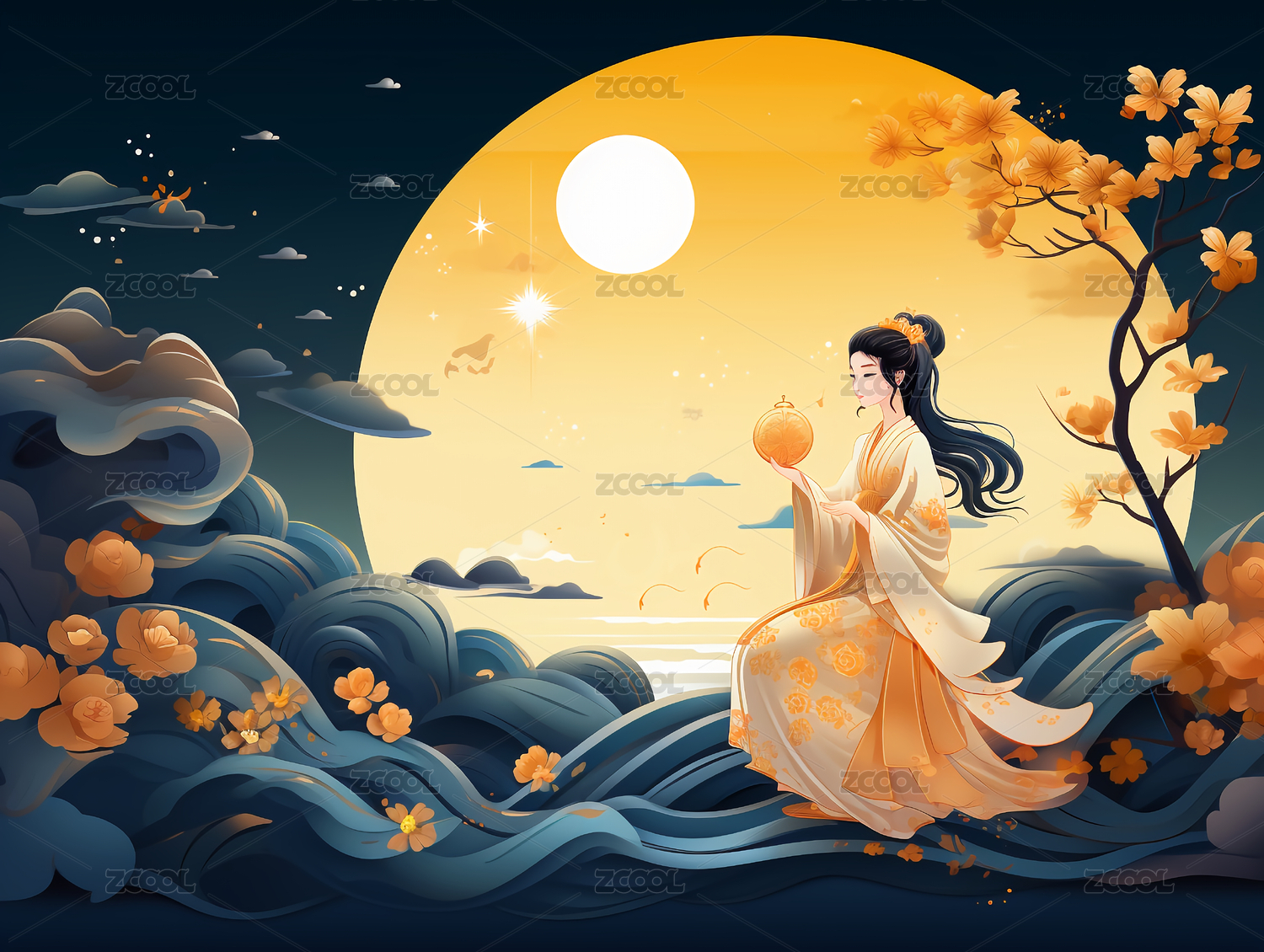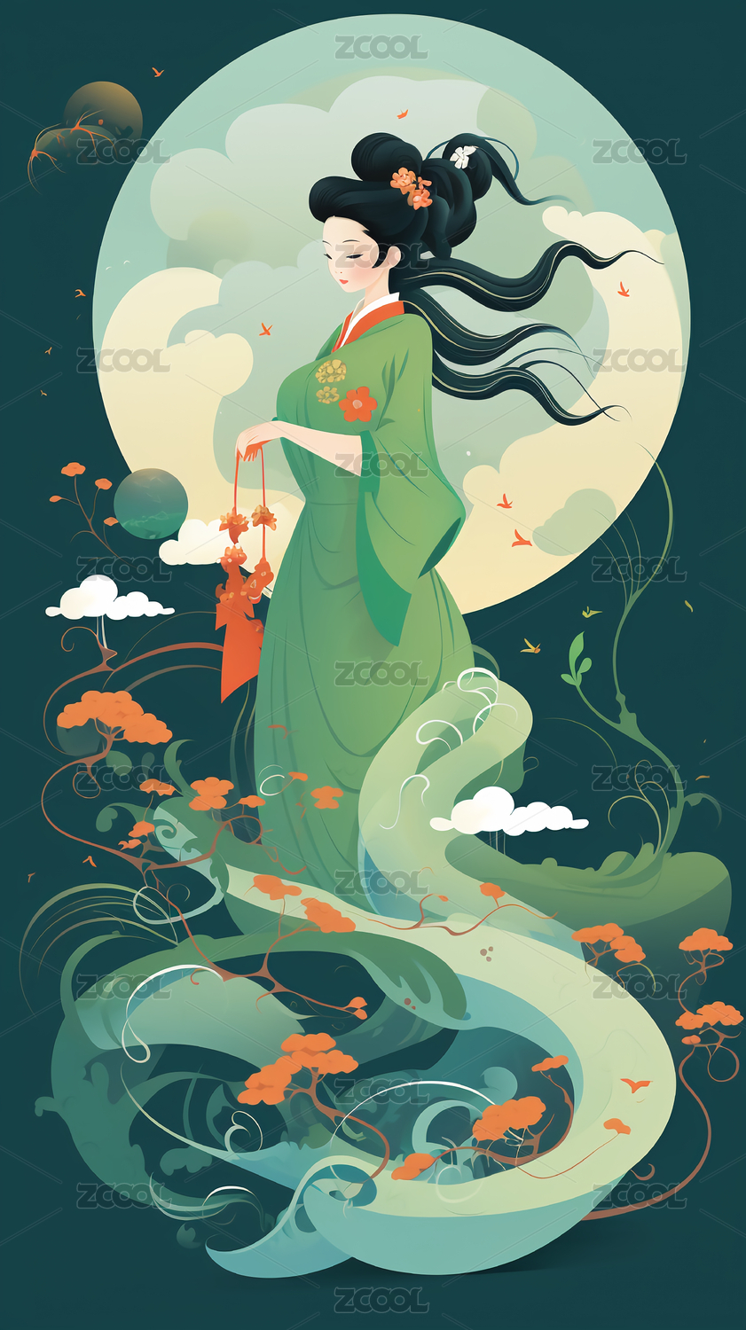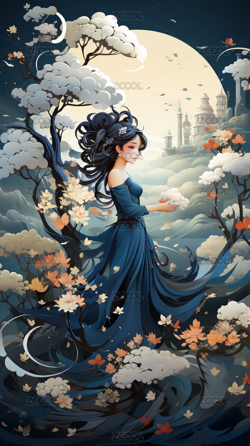 中秋节嫦娥主题壁纸插画