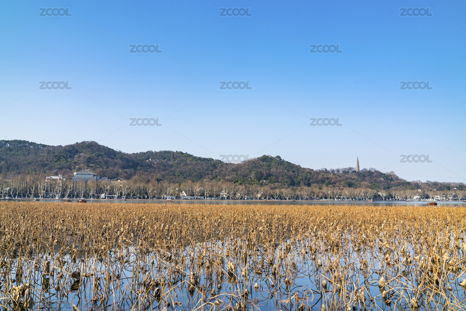 杭州,西湖,湖泊,秋色,湖水,保俶塔,秋天,残荷,黄色,暖色