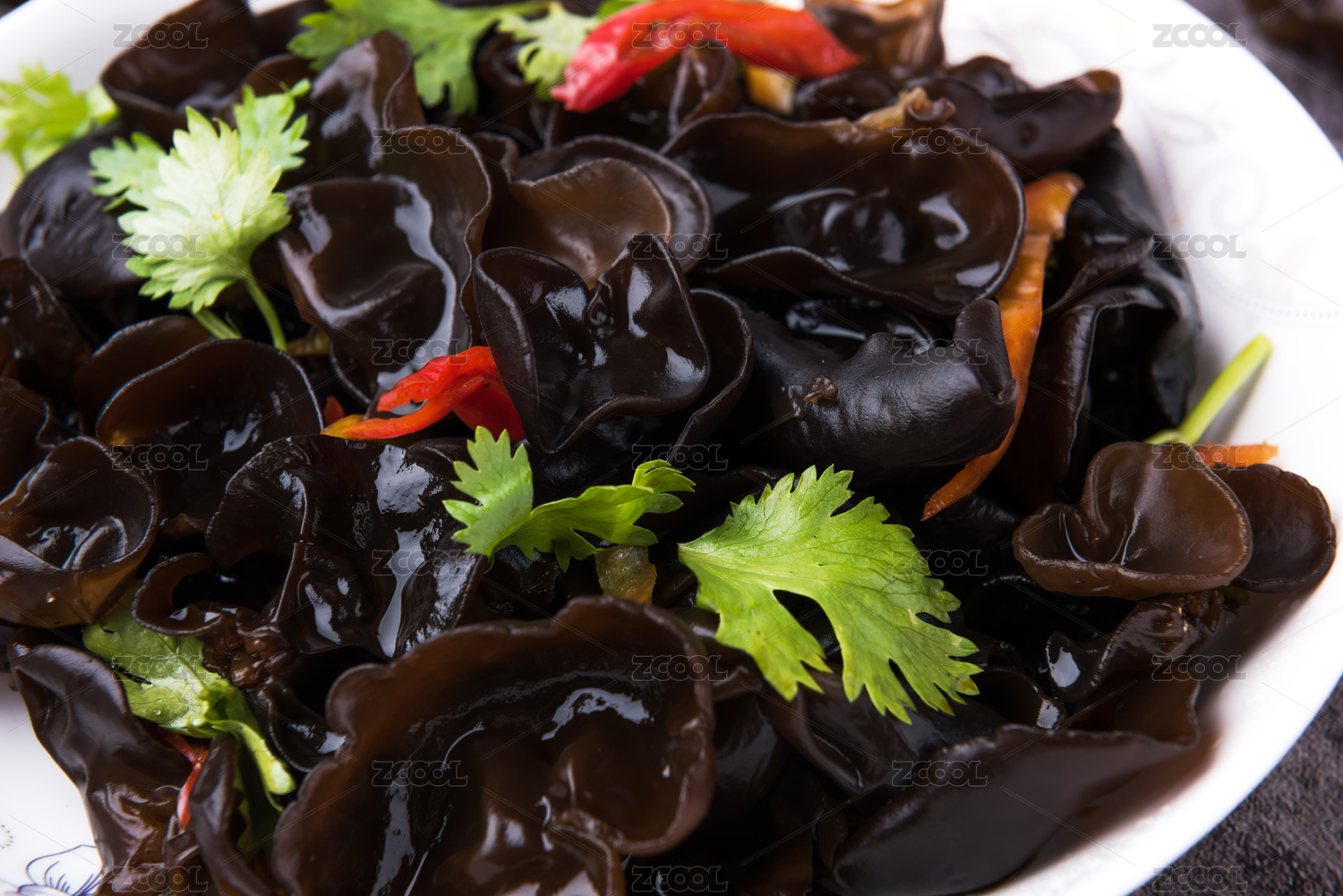 凉拌木耳,中国美食,黑木耳和红辣椒,香菜