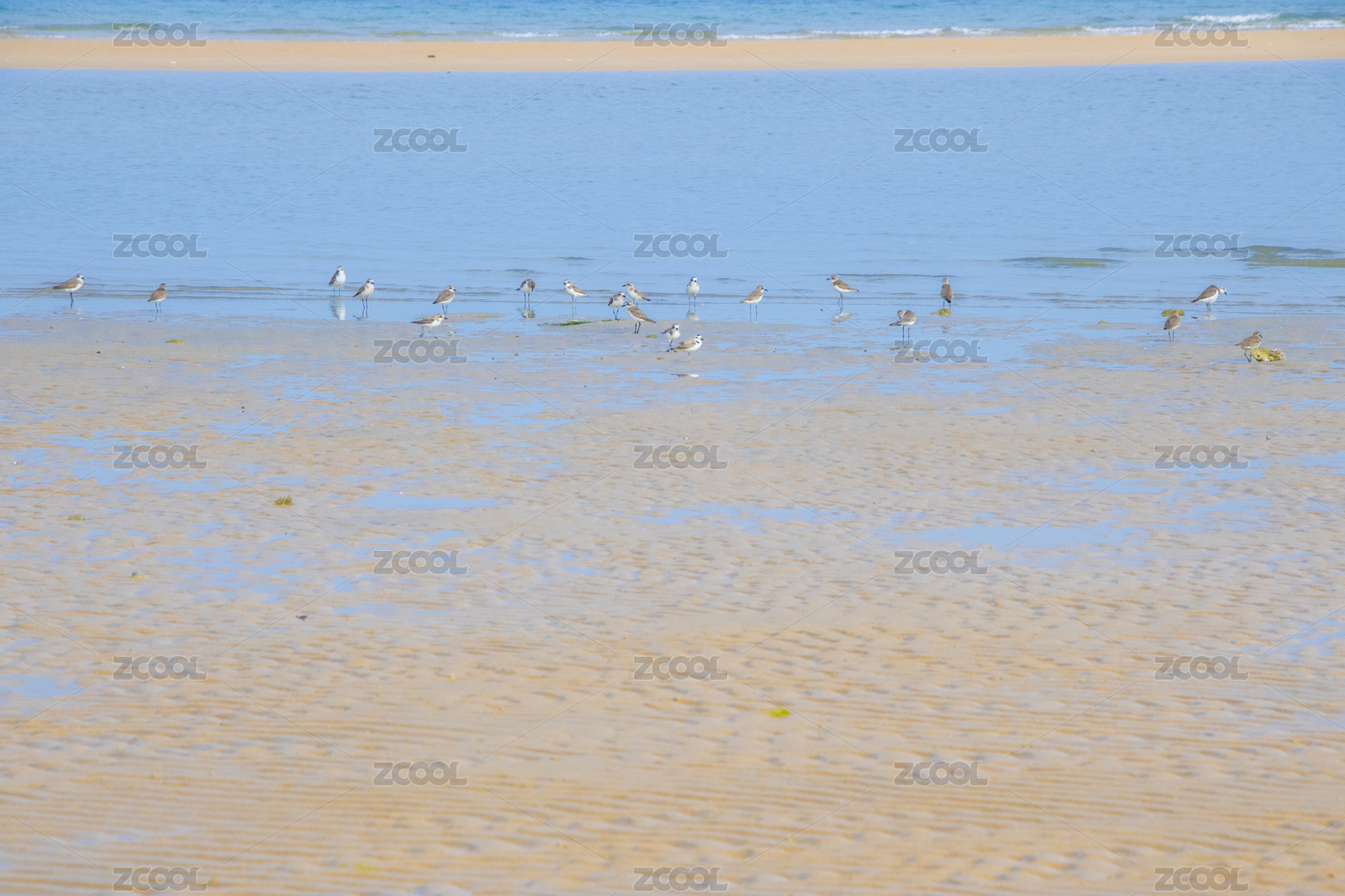 山东省日照市:海鸥在金色沙滩上翩翩起舞