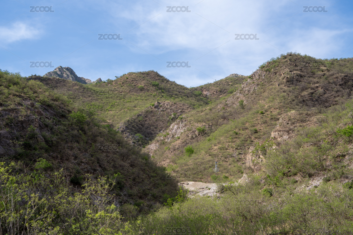 郑州荥阳环翠峪晴朗天空下长满草和植物的山坡